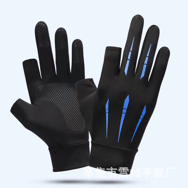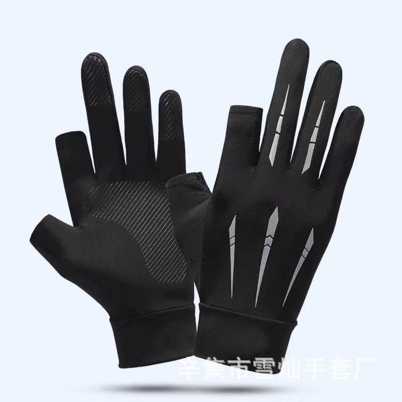 여름에는 남성과 여성을 위한 얼음 실크 장갑, 두 손가락과 반 손가락 자외선 차단 장갑, 야외 사이클링, 낚시 및 운전 장갑