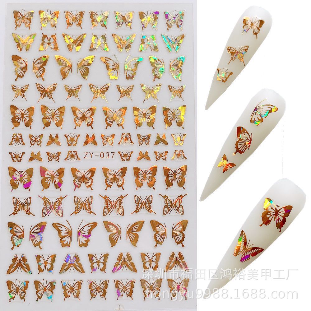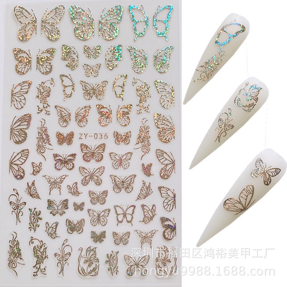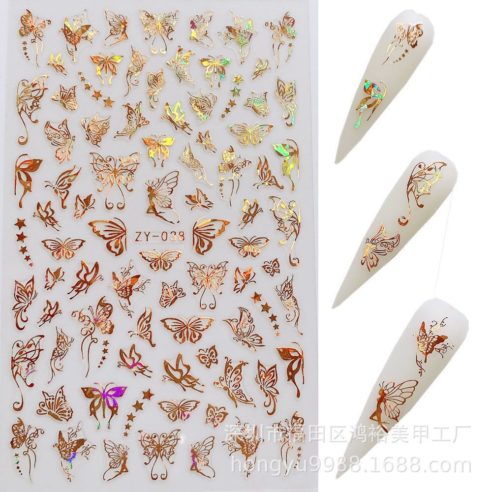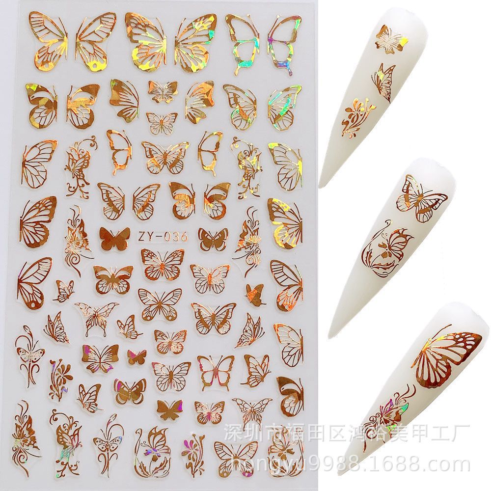 크로스 보더 나비 네일 아트 브론징 레이저 나비 네일 스티커 3D 네일 데칼 스테레오 네일 스티커스토어 가기