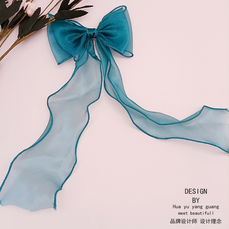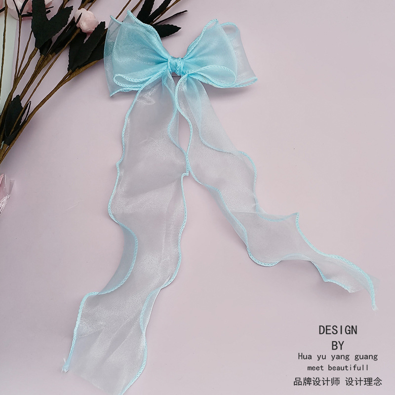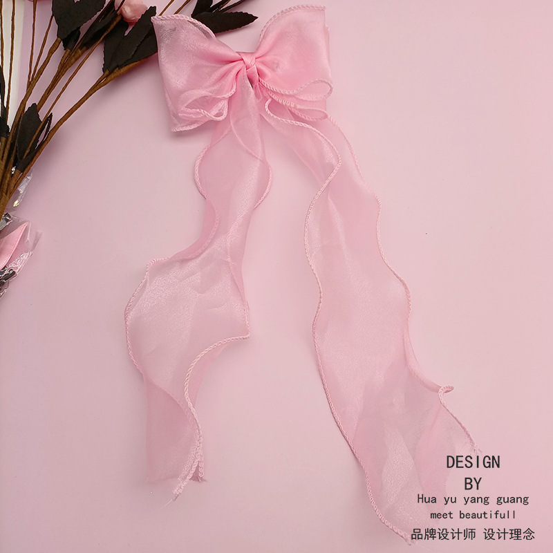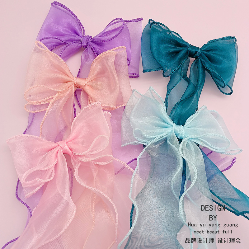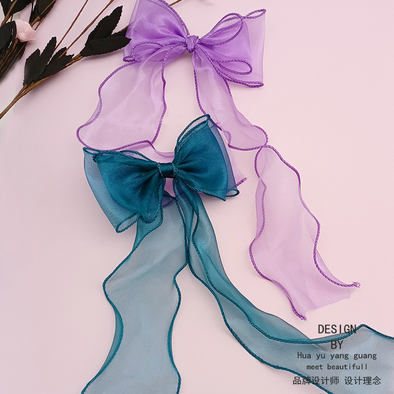 한국 포니 테일 헤어 액세서리 기질 볼 헤어 클립 소녀 긴 리본 활 머리핀 공주 헤어 액세서리스토어 가기