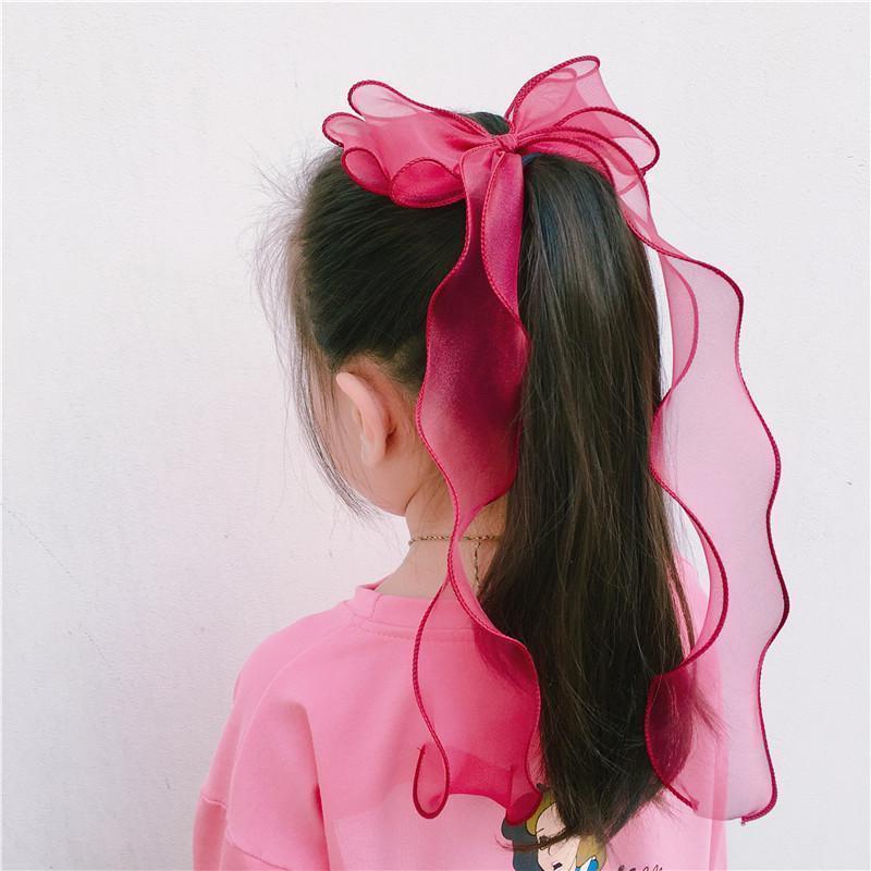 한국 포니 테일 헤어 액세서리 기질 볼 헤어 클립 소녀 긴 리본 활 머리핀 공주 헤어 액세서리