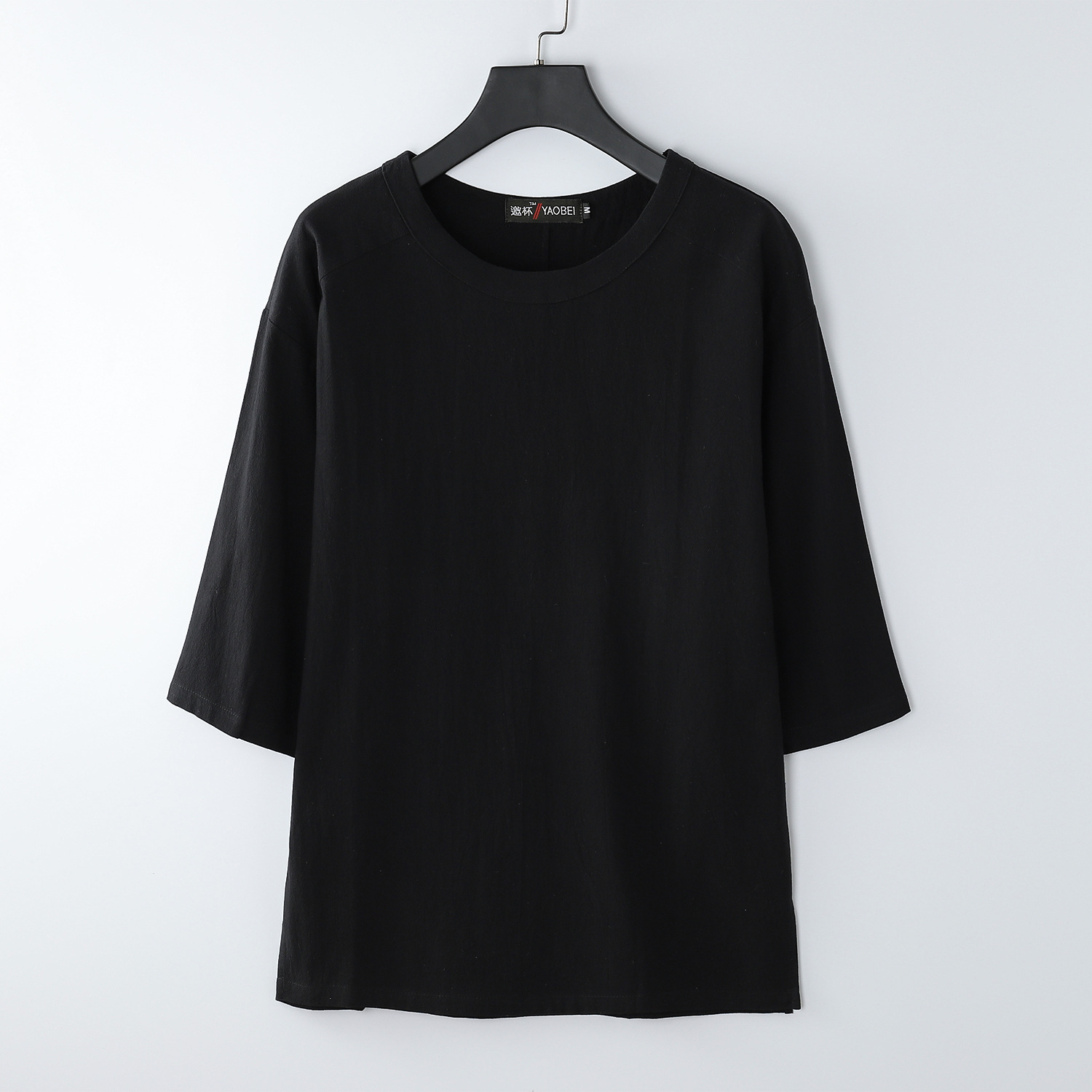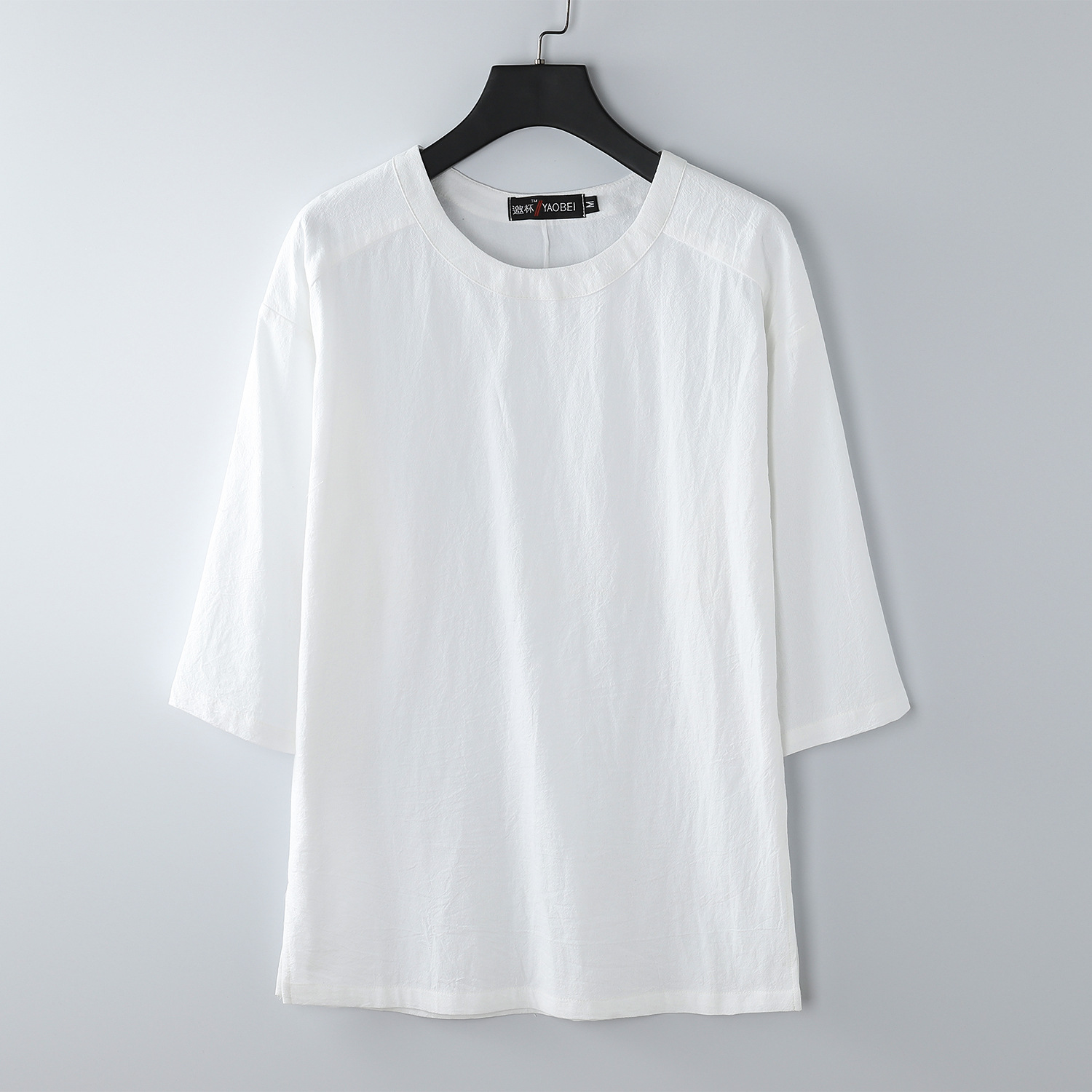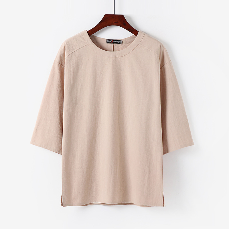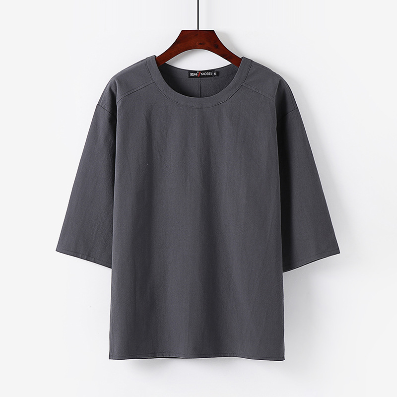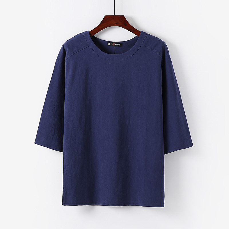 신상품 플러스 사이즈 티셔츠 남자의 반팔 느슨한 린넨 소재 티셔츠 빈티지 중국 스타일 남자의 여름 7 소매 면 린넨 티셔츠