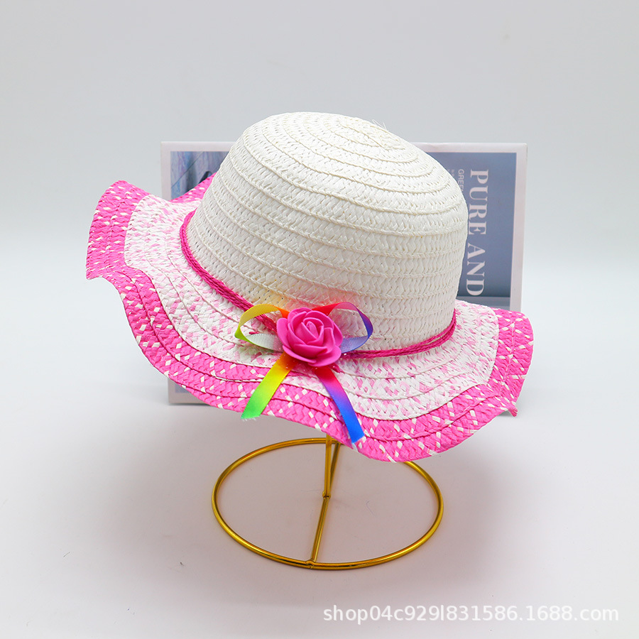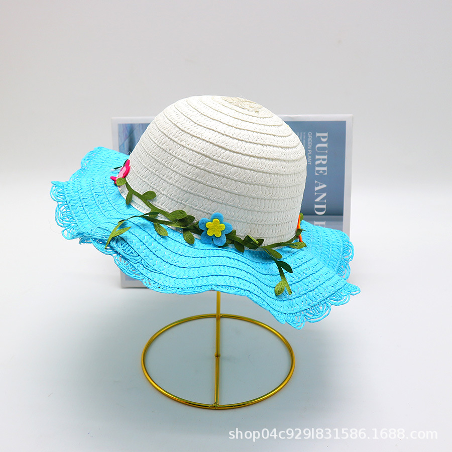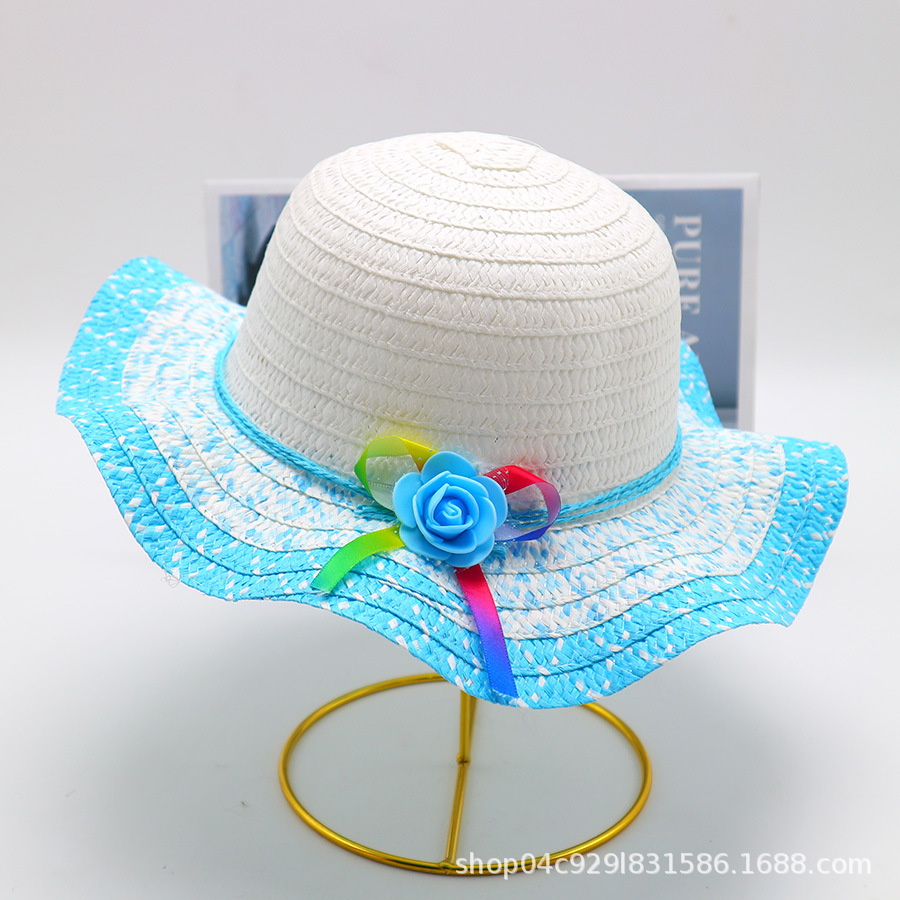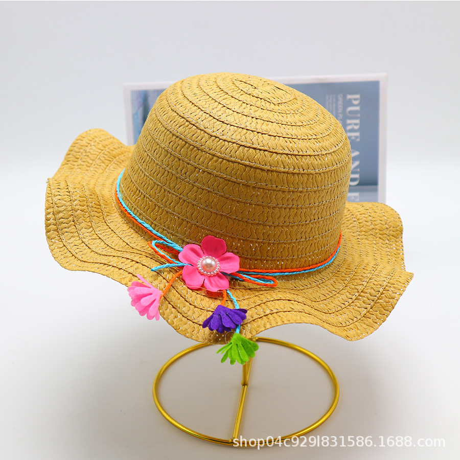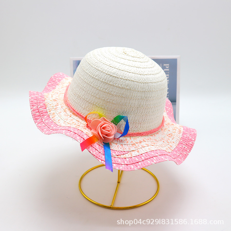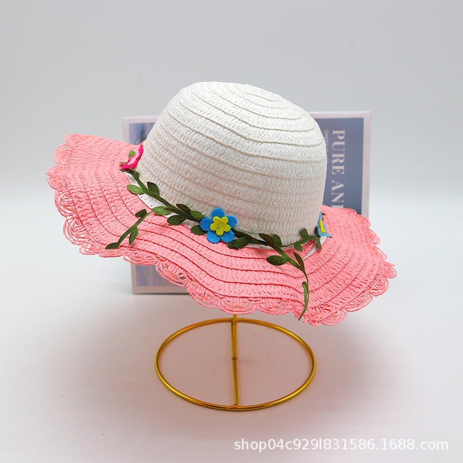 봄과 여름 큰 처마 차양 밀짚 모자 어린이 달콤한 바람 야외 소녀 베이비 비치 선 스크린 태양 모자스토어 가기