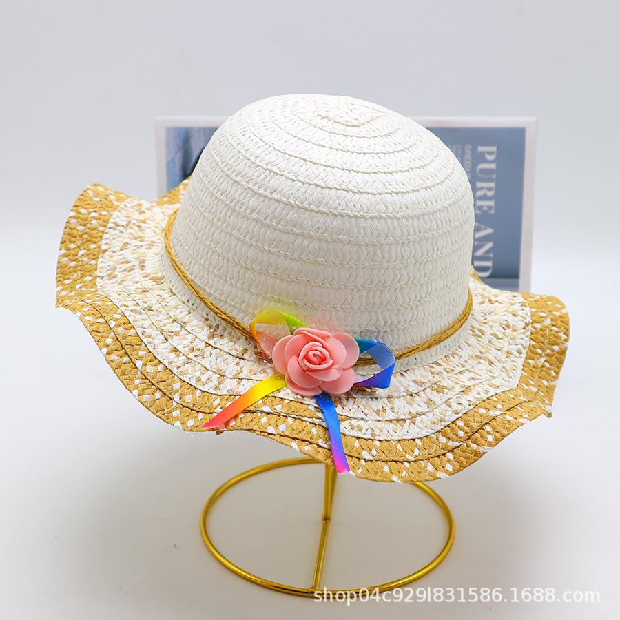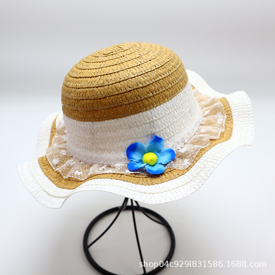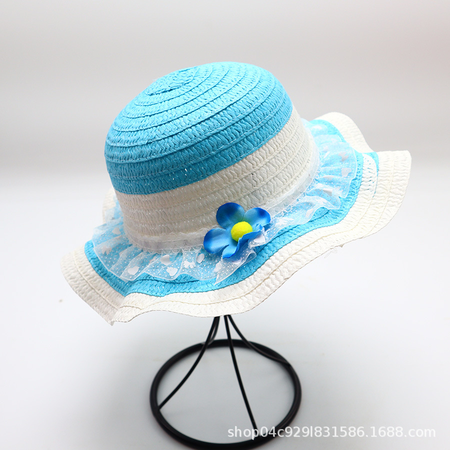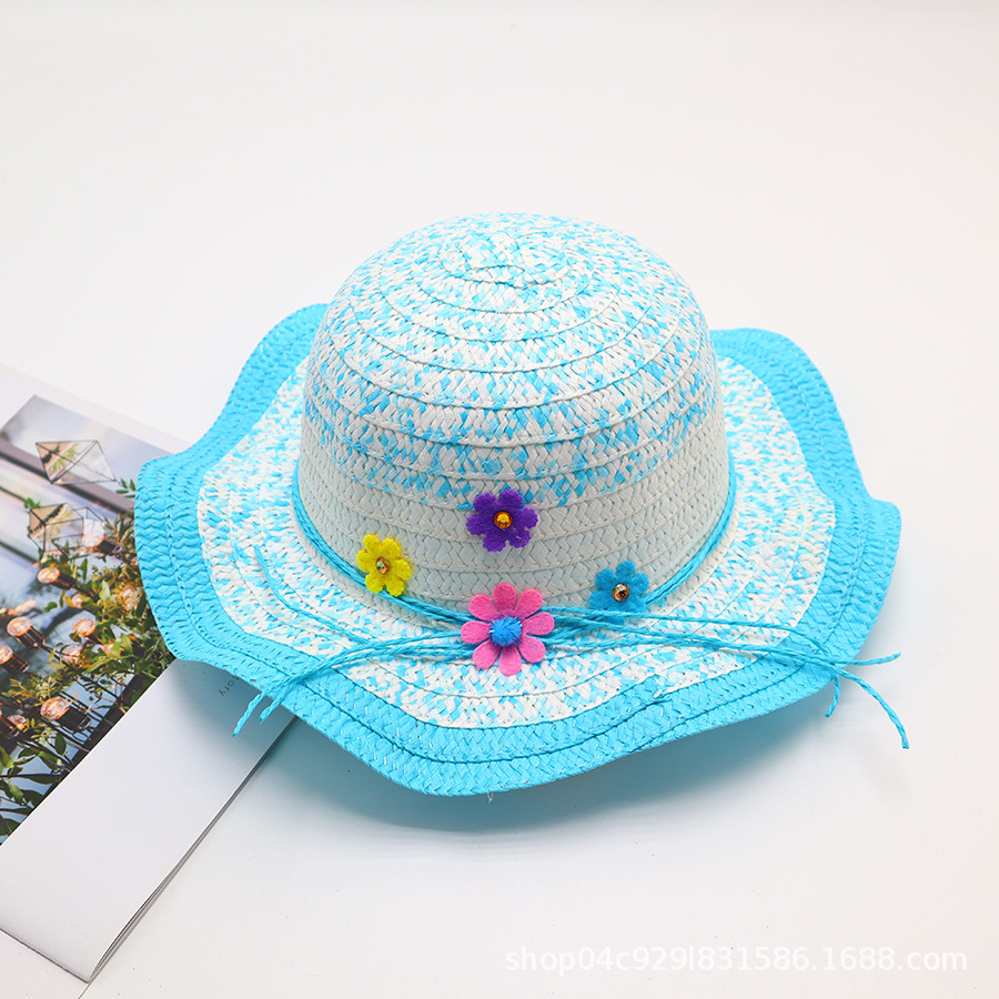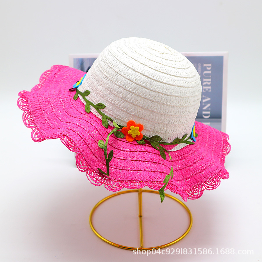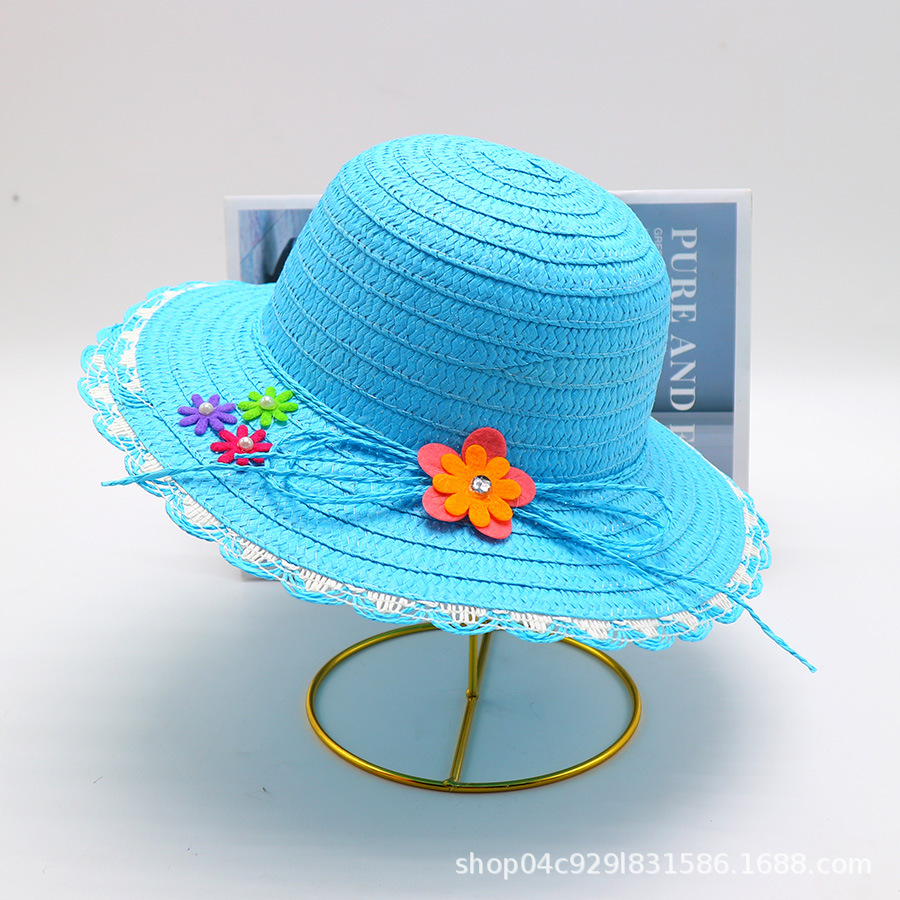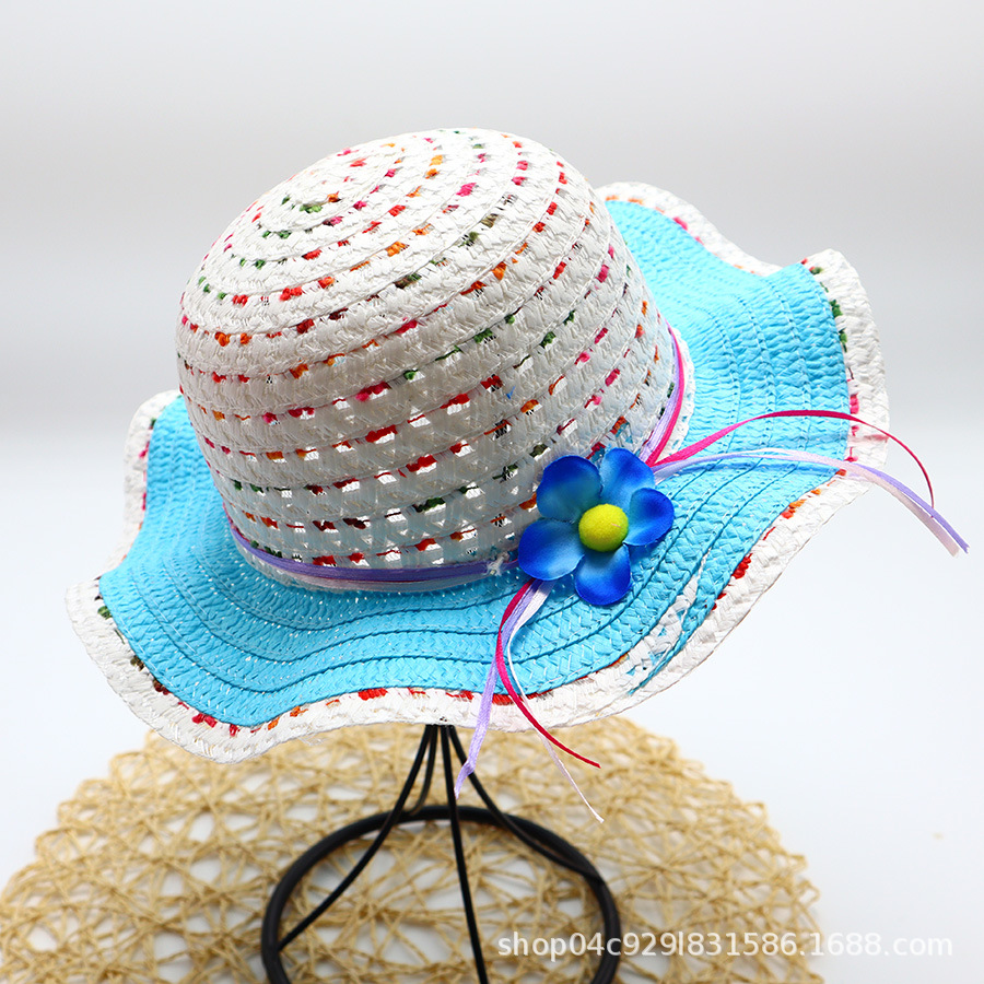 봄과 여름 큰 처마 차양 밀짚 모자 어린이 달콤한 바람 야외 소녀 베이비 비치 선 스크린 태양 모자스토어 가기