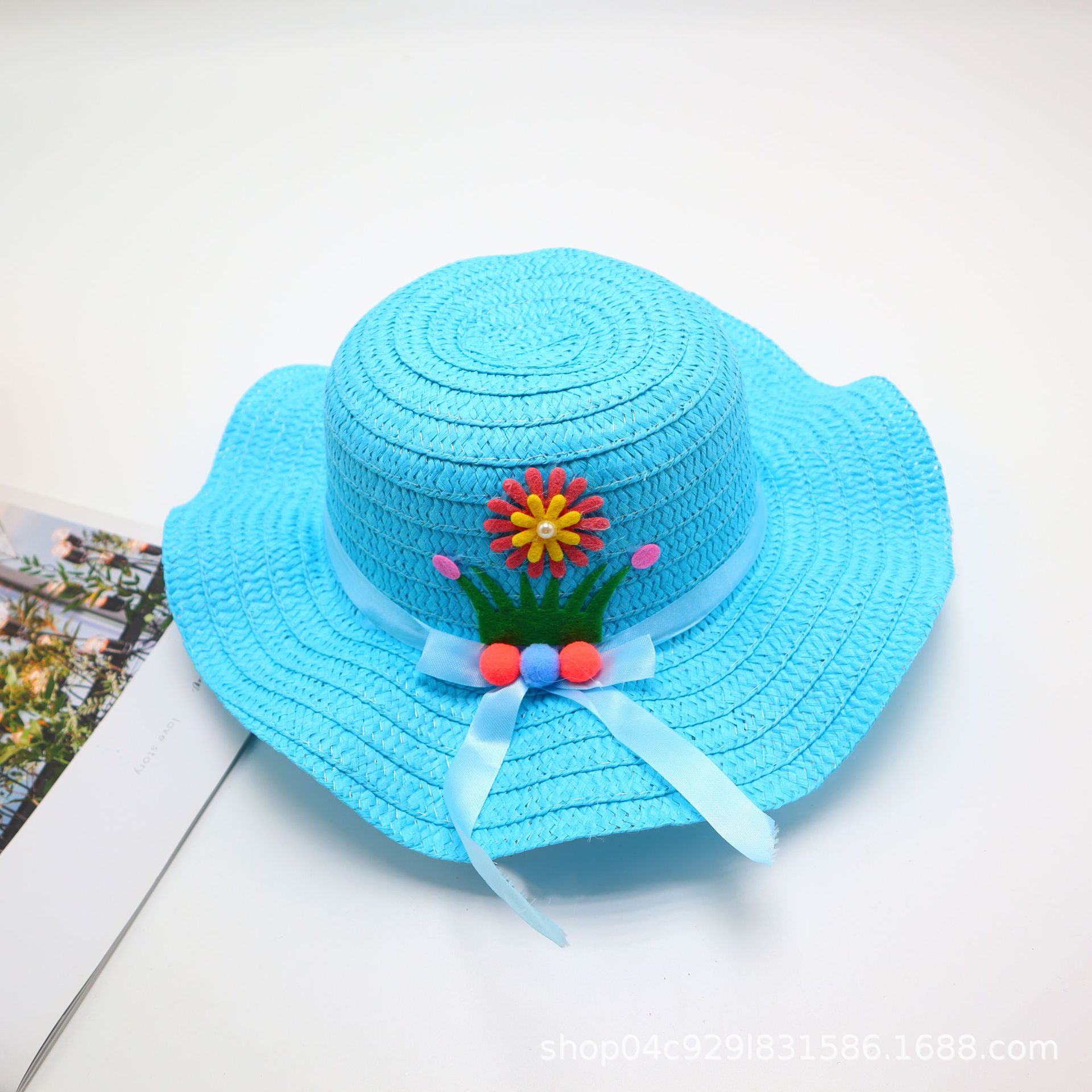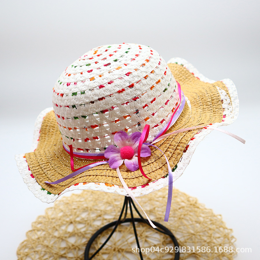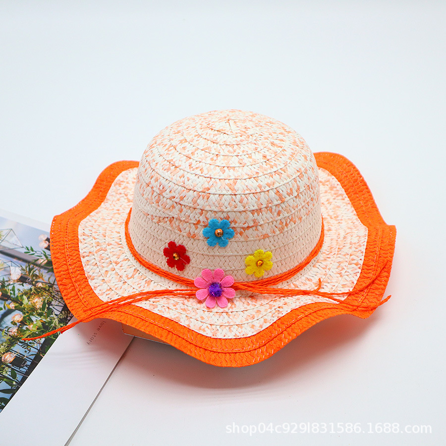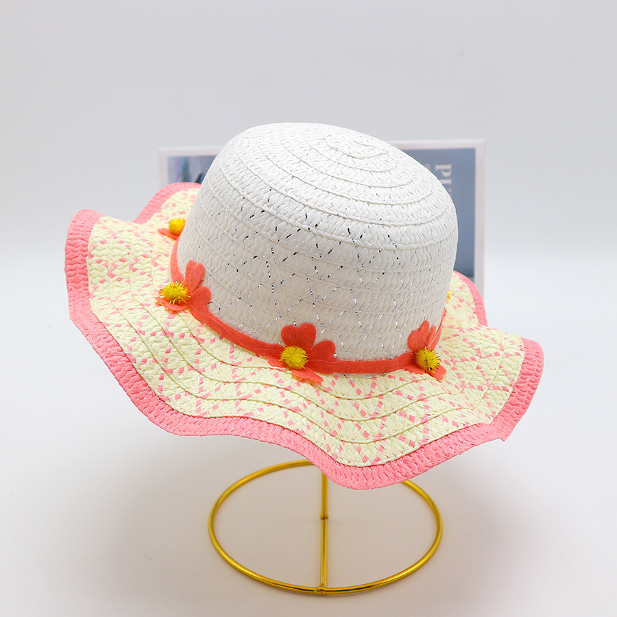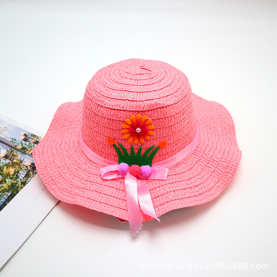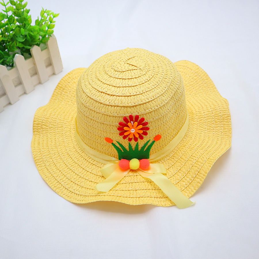 봄과 여름 큰 처마 차양 밀짚 모자 어린이 달콤한 바람 야외 소녀 베이비 비치 선 스크린 태양 모자스토어 가기
