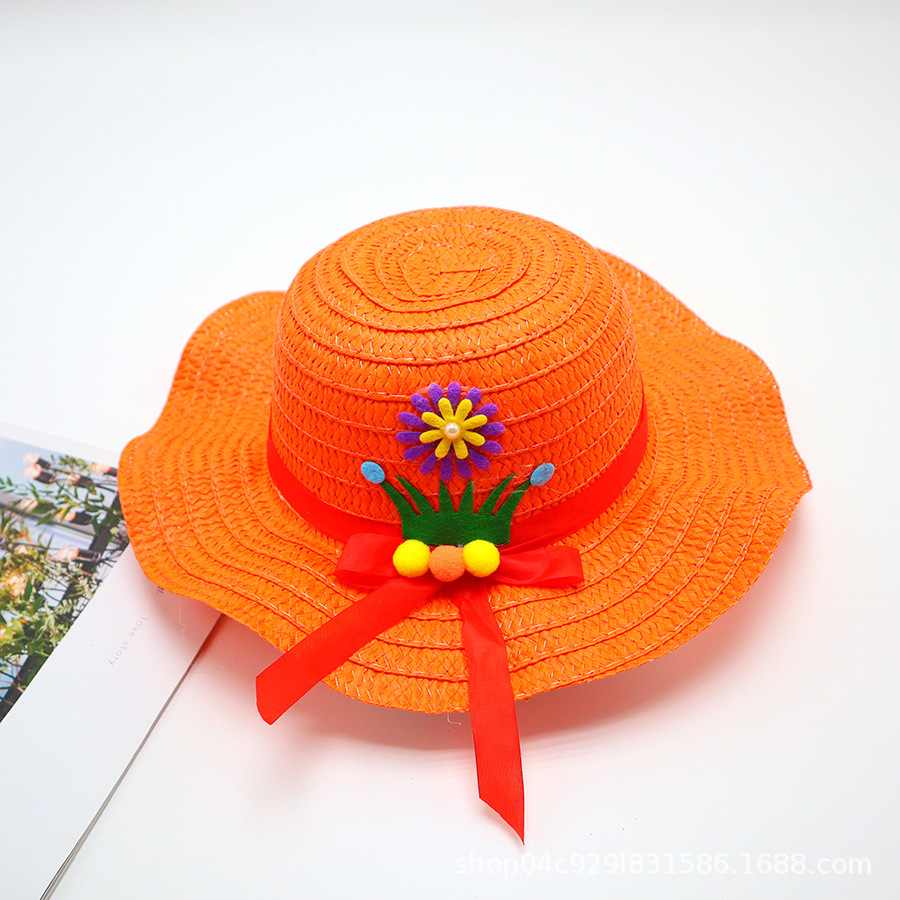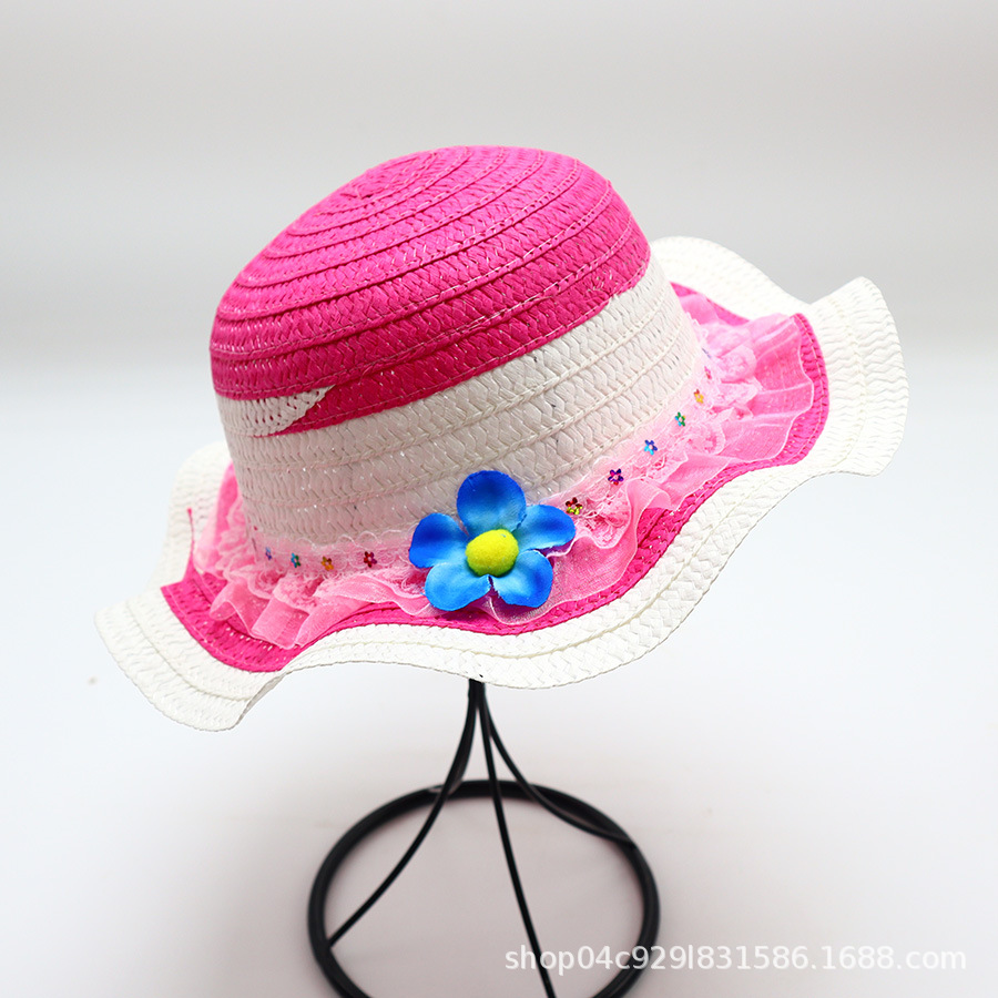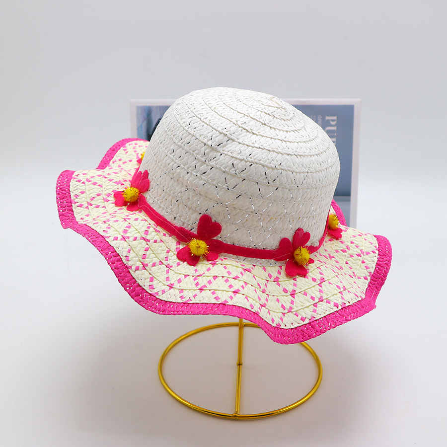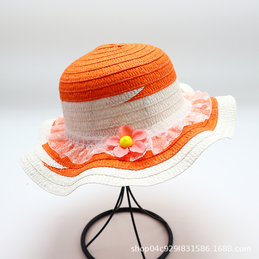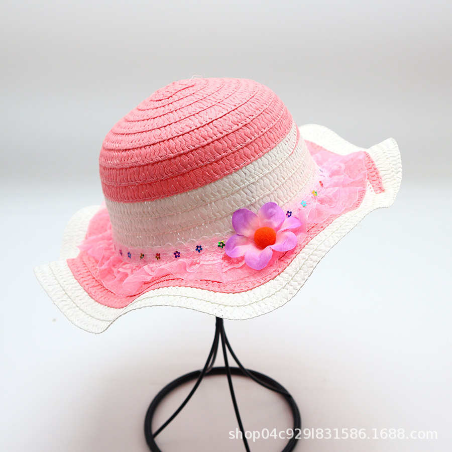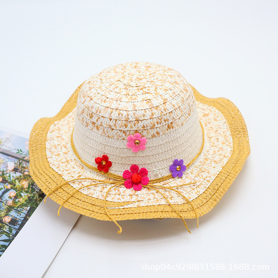 봄과 여름 큰 처마 차양 밀짚 모자 어린이 달콤한 바람 야외 소녀 베이비 비치 선 스크린 태양 모자스토어 가기