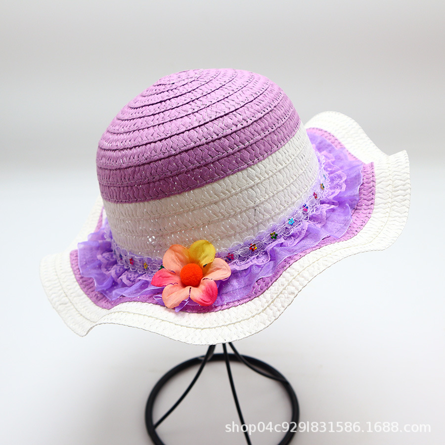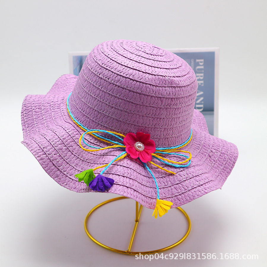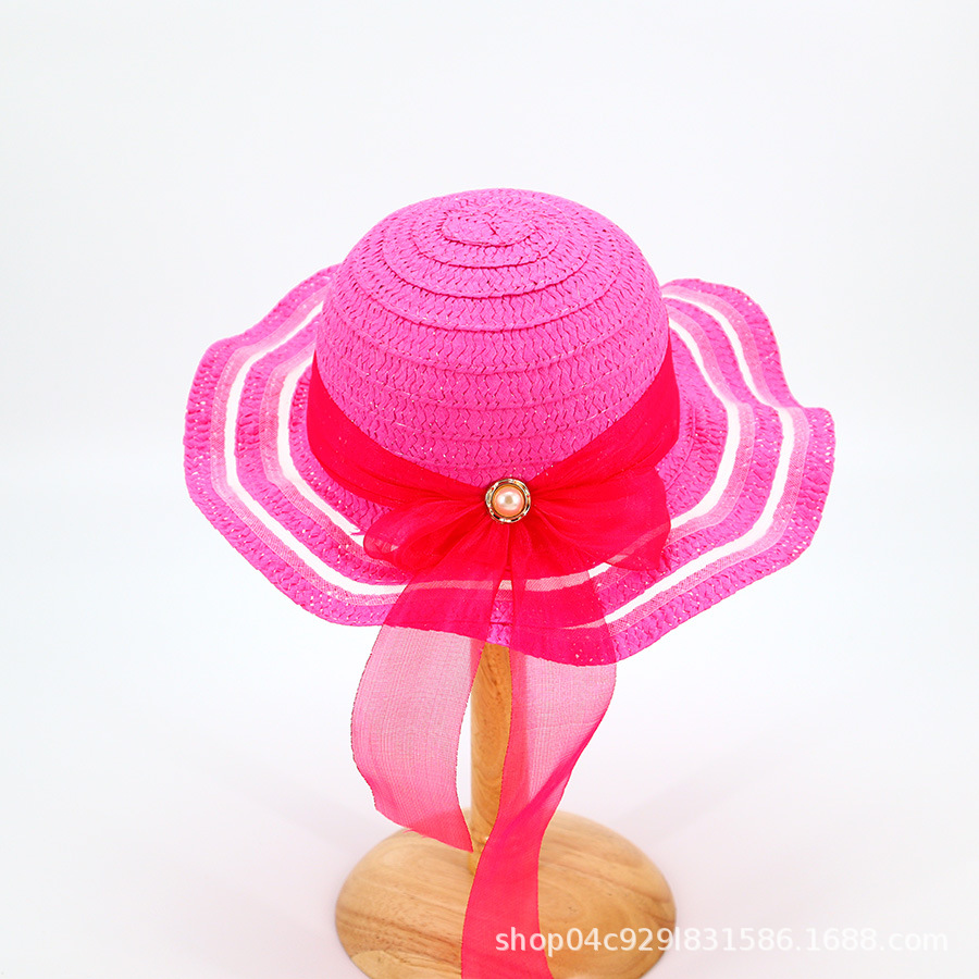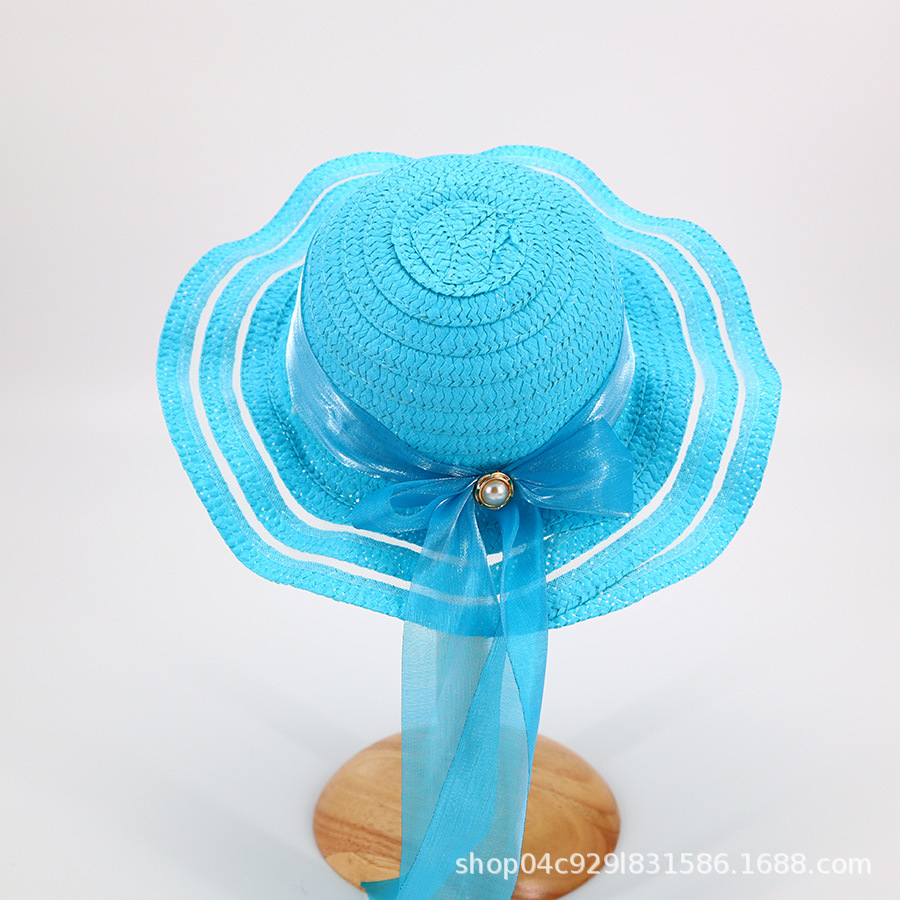 봄과 여름 큰 처마 차양 밀짚 모자 어린이 달콤한 바람 야외 소녀 베이비 비치 선 스크린 태양 모자