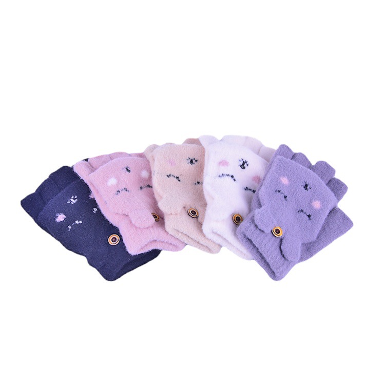 제조업체 맞춤형 한국어 버전 귀여운 가을, 겨울 따뜻한 모직 원사 니트 터치 스크린 플립 장갑 아크릴 자수 장갑스토어 가기