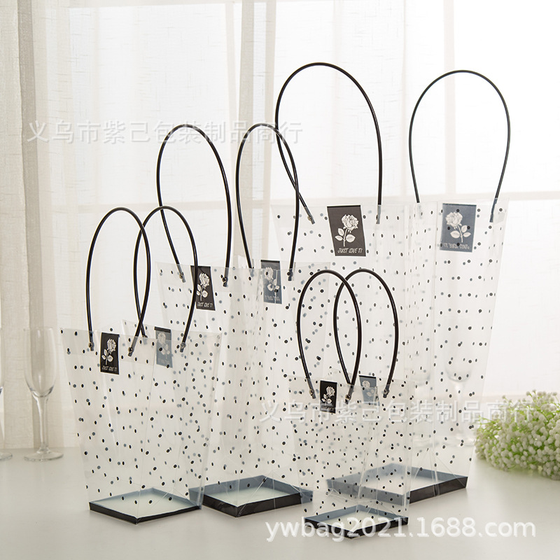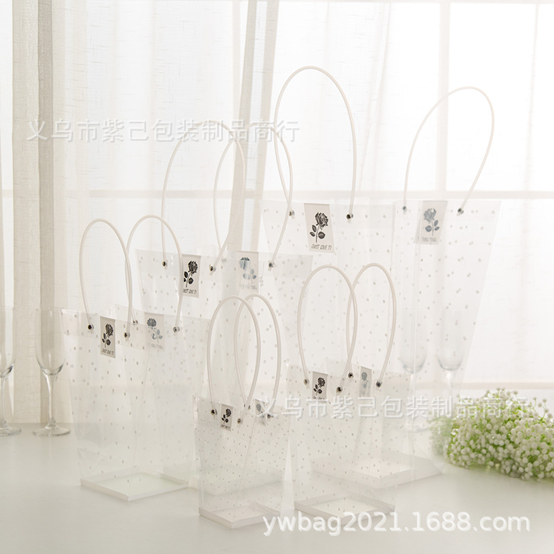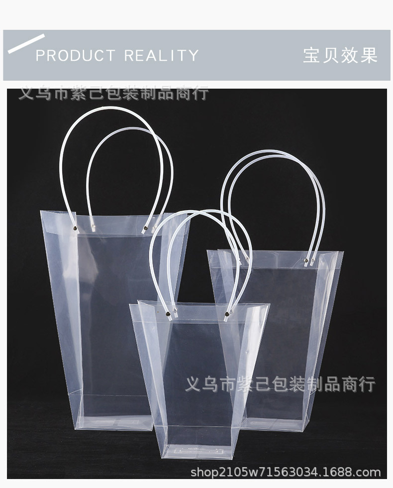 款产品采用全新18丝超透明PP材料,环保PE皮管拎手,厚实耐提。