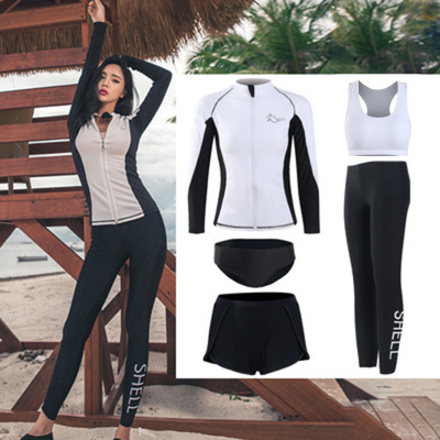 공장 직접 긴 소매 스플릿 5 피스 수영복 여성 바지 비키니 4 피스 수영복 선 스크린 수영복스토어 가기