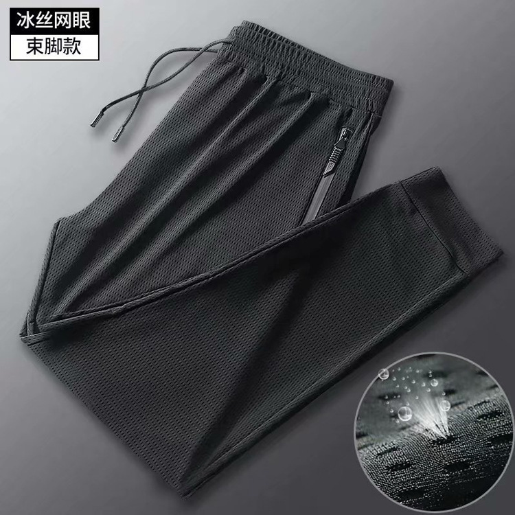 여름 얇은 아이스 실크 바지 남성 캐주얼 바지 실속 공급 느슨한 스포츠 바지 작은 다리 스트레치 바지 스트레치 다리
