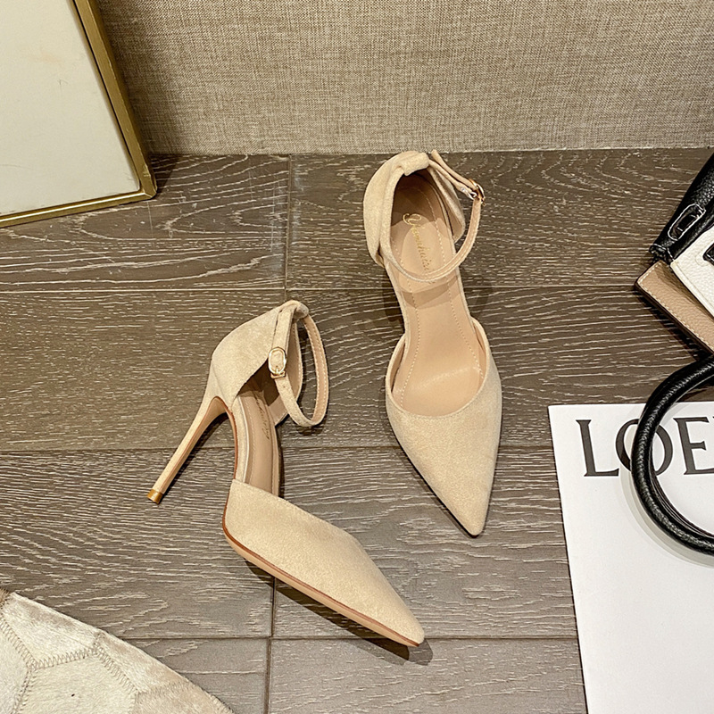 새로운 스타일 스틸레토 힐 뾰족한 중공 하이힐 얕은 입 한 신발 한국 패션 스웨이드 여성 신발 발가락 여성 샌들