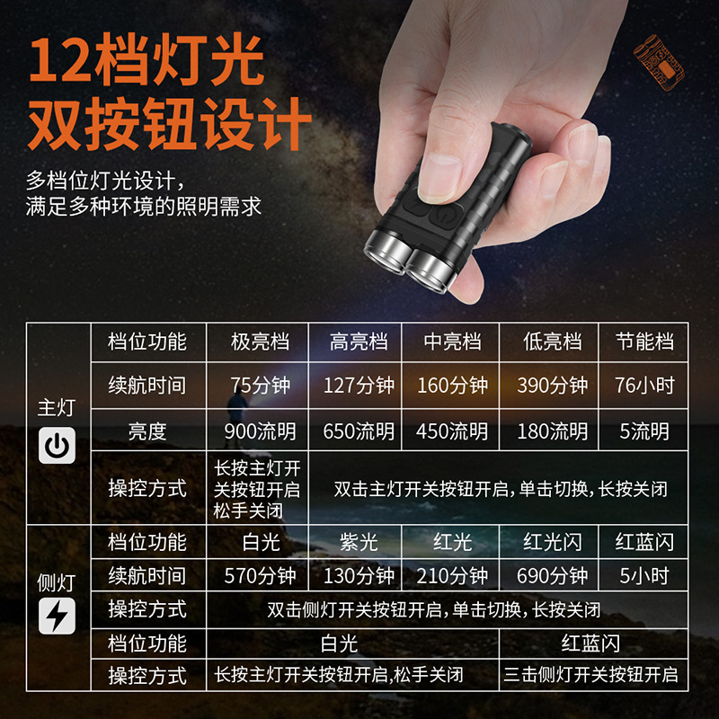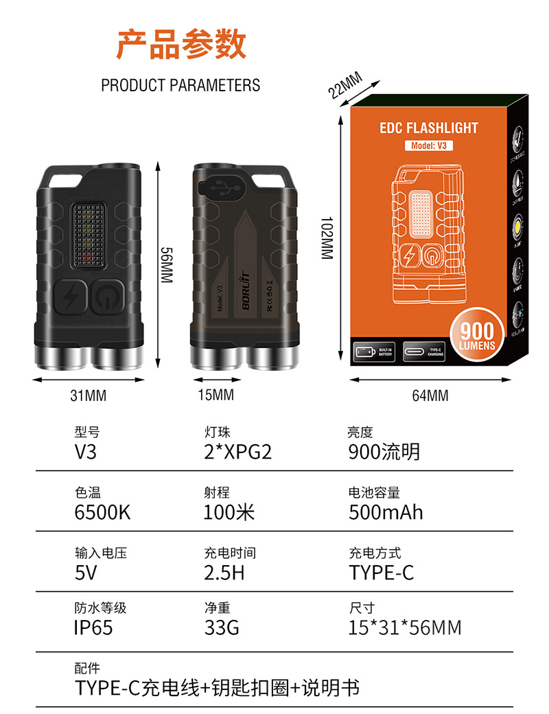 프라이빗 모델 V3 키체인 라이트 USB 충전 강력한 미니 손전등 측면 라이트 다기능 LED 작업등 야광