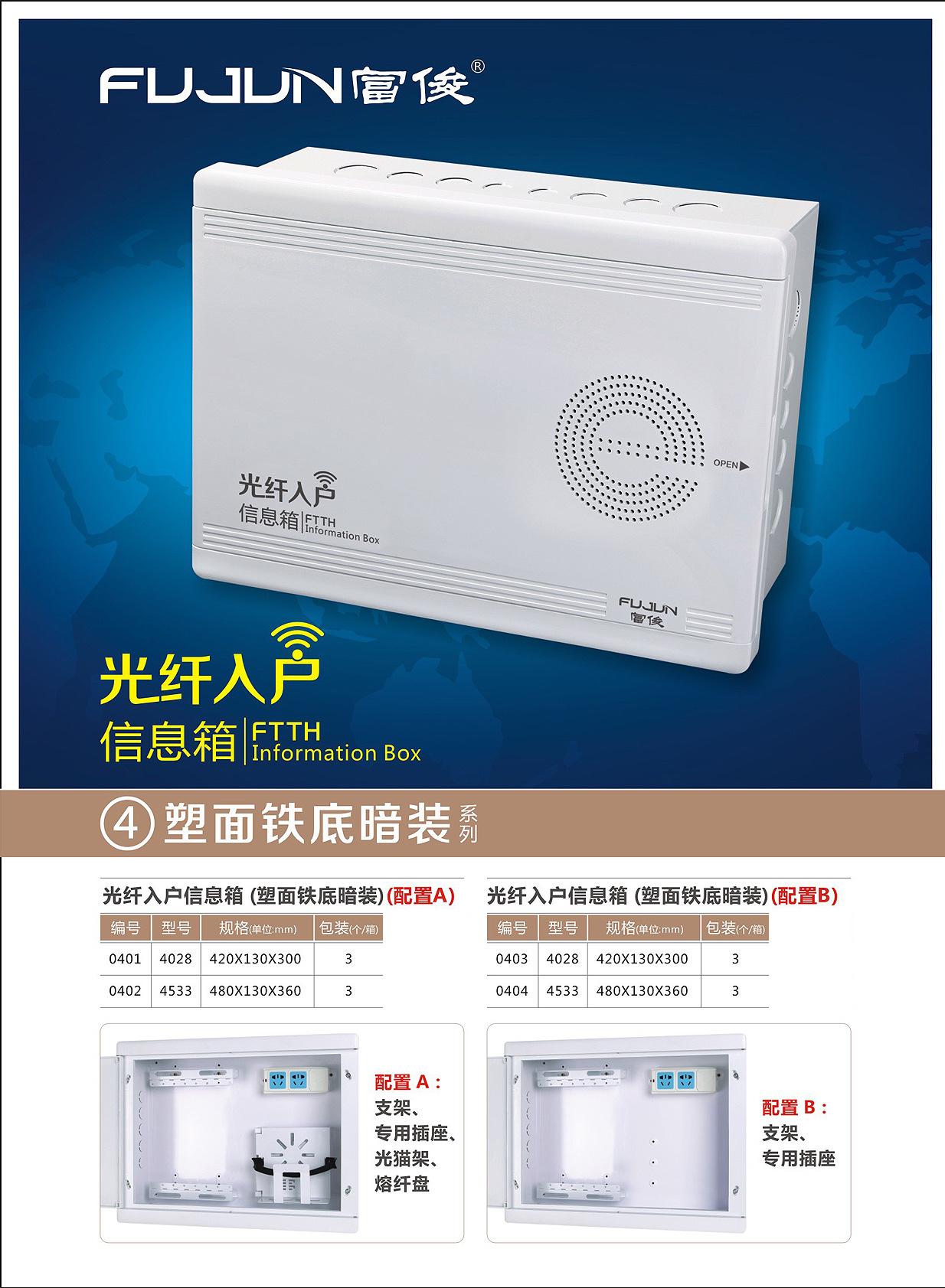 Fujun 브랜드 플라스틱 표면 철 상자 정보 상자 은폐 된 약한 상자 유통 상자 네트워크 케이블 저장 상자 멀티미디어 정보 상자