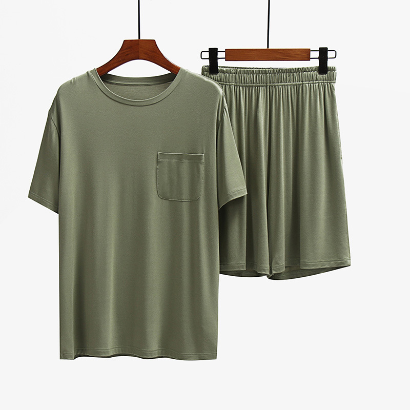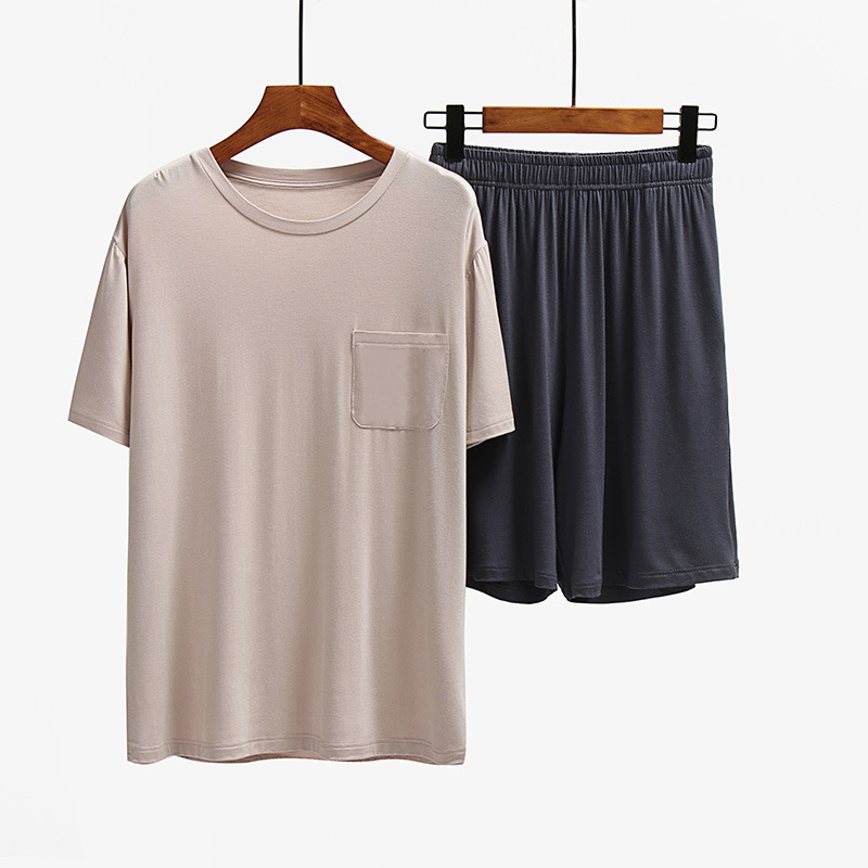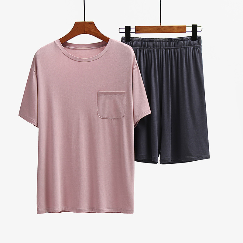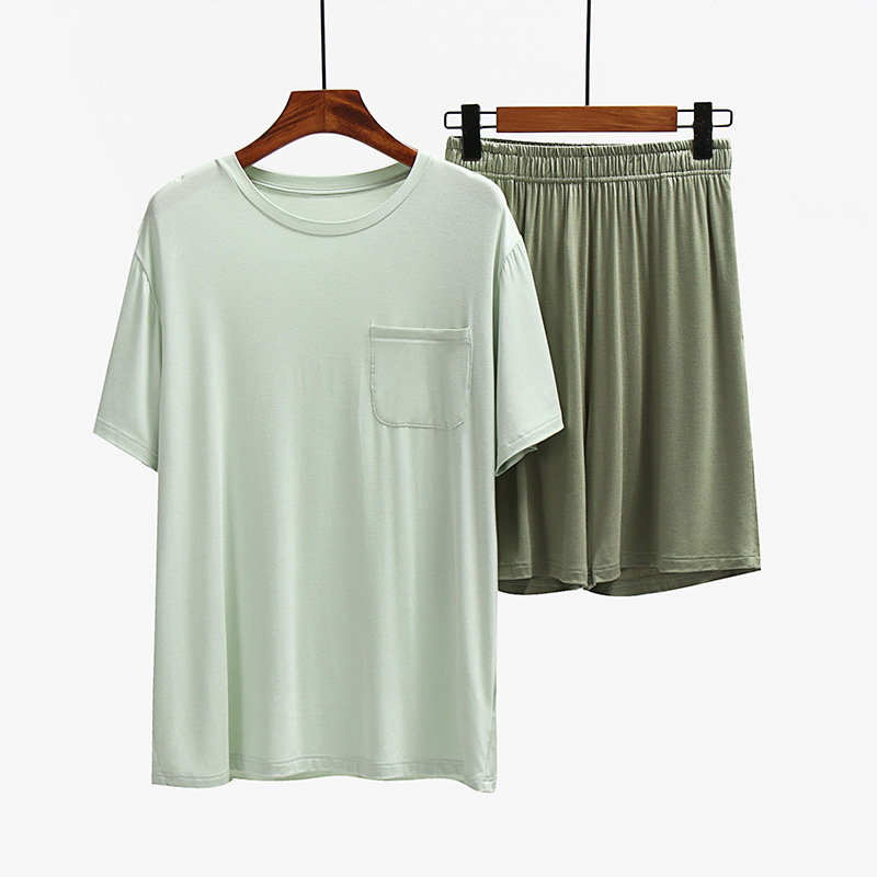 남성용 홈웨어 얇은 여름 남성용 반팔 반바지 세트 피부 친화적 캐주얼 홈 반팔 세트