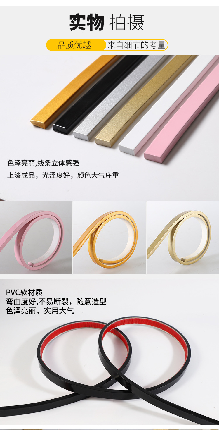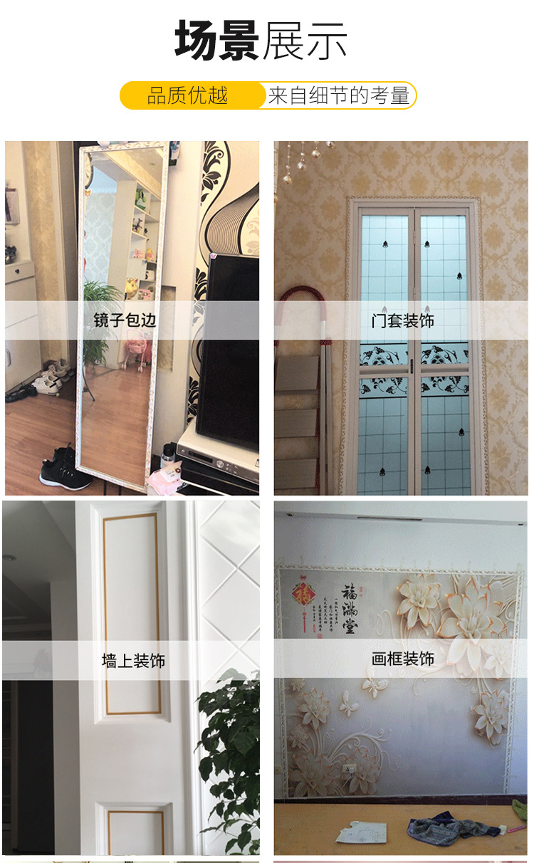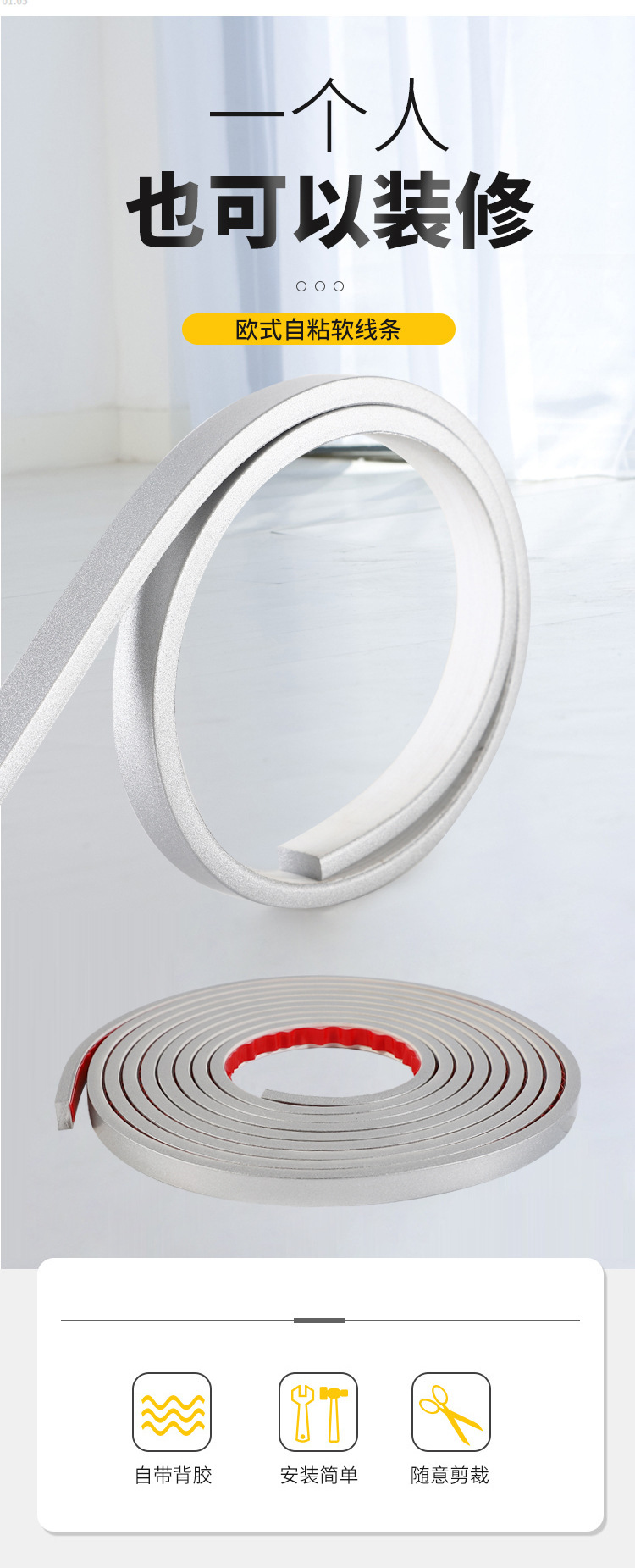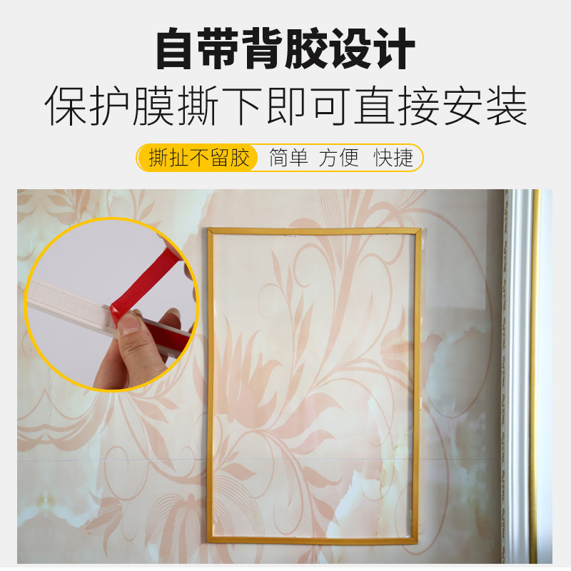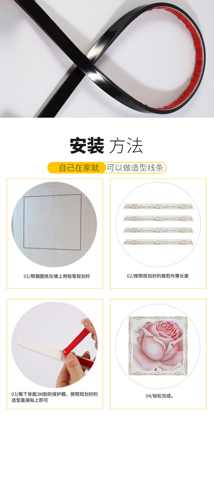 PVC 자체 접착 평면 패널 장식 라인 석고 천장 라인 TV 배경 벽 테두리 라인 거울 가장자리 스트립
