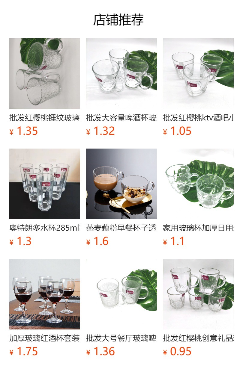도매 빨간 체리 창조적 인 선물 유리 투명 유리 찻잔 손잡이 가정용 유리 손잡이 세트스토어 가기