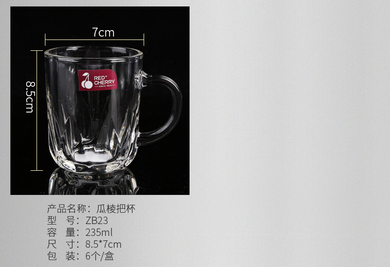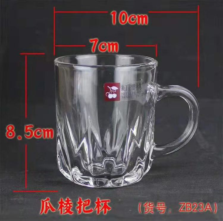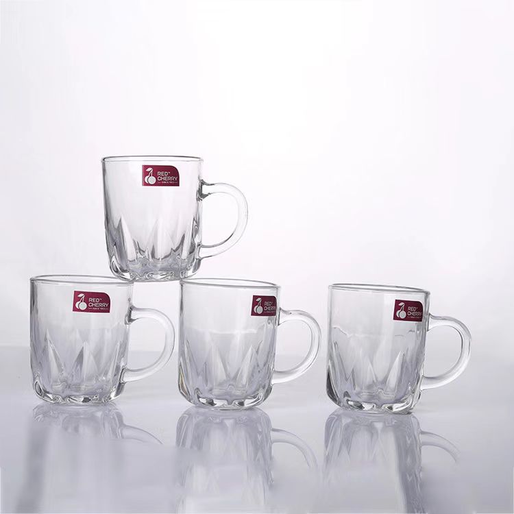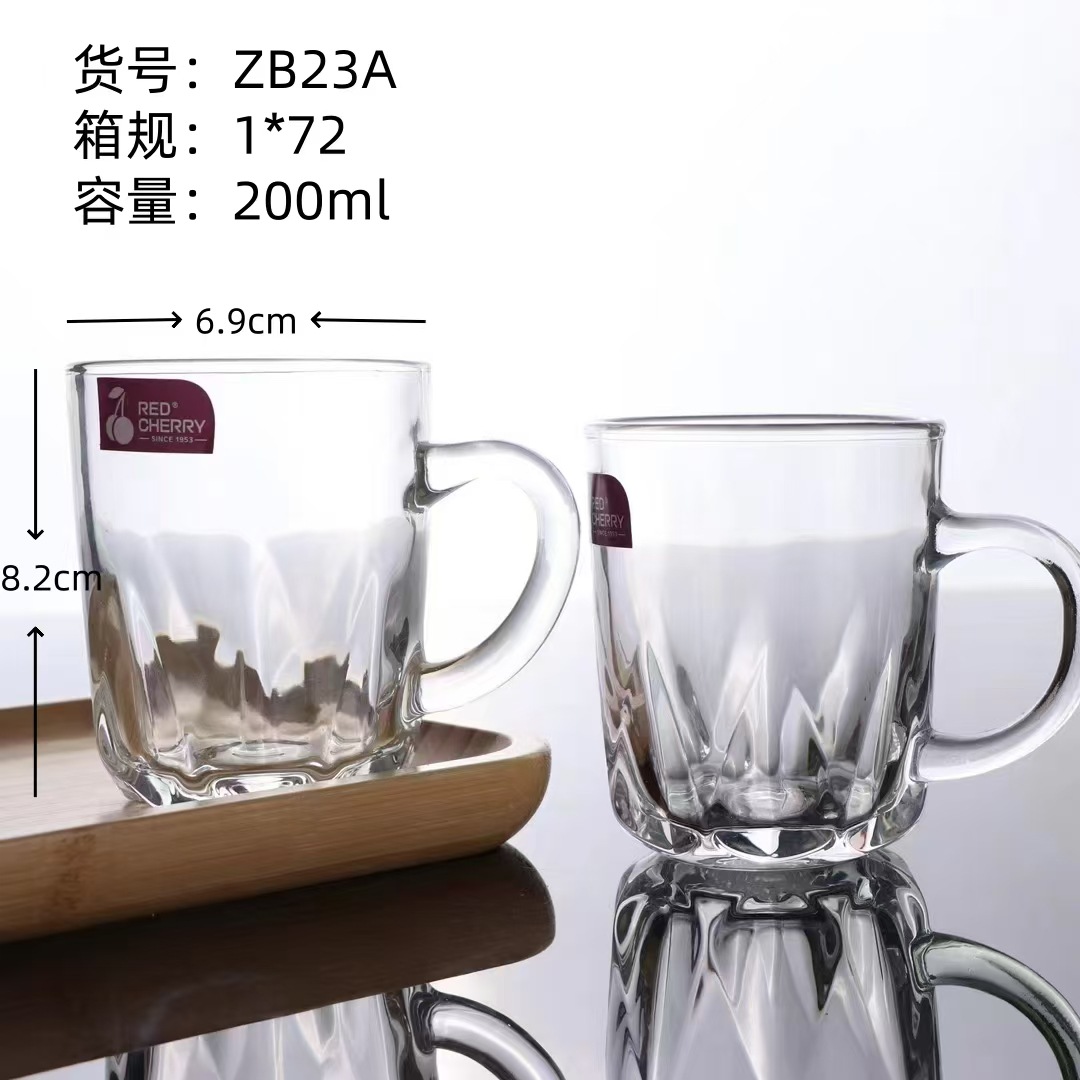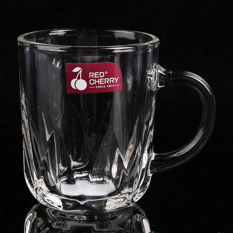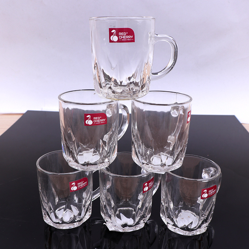 도매 빨간 체리 창조적 인 선물 유리 투명 유리 찻잔 손잡이 가정용 유리 손잡이 세트