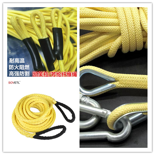 케블라 섬유 내열성 방염 로프 아라미드 방화 고온 저항 로프 강력한 인장력 방절단 로프 군사 등급스토어 가기