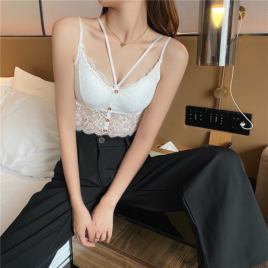 새로운 프랑스 스타일 레이스 버튼 캐미솔 유행 섹시한 벨트 가슴 패드 어깨 겉옷 여성의 푸시 업 내부 탑스토어 가기