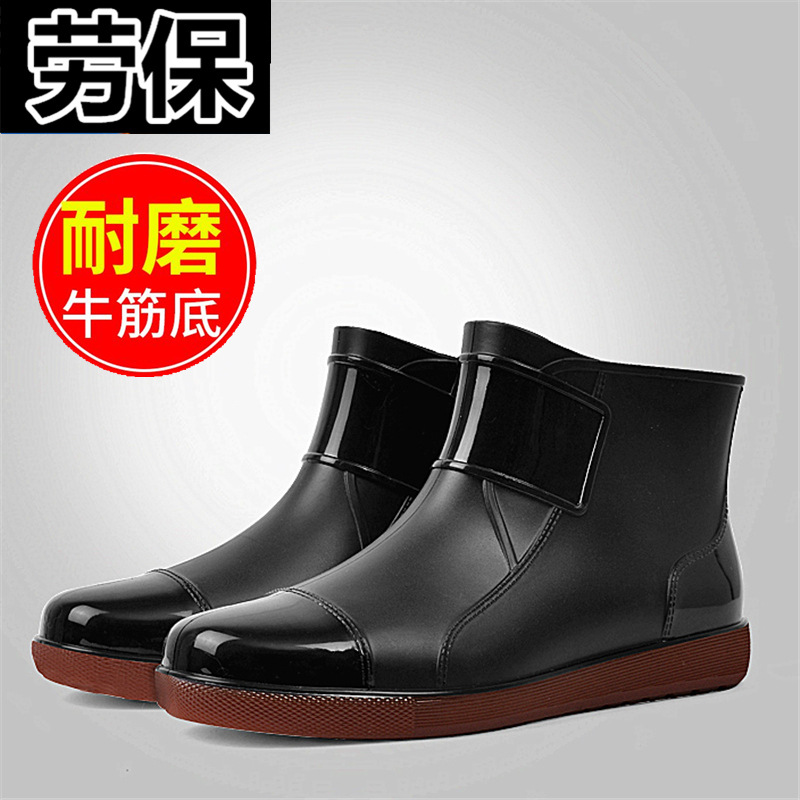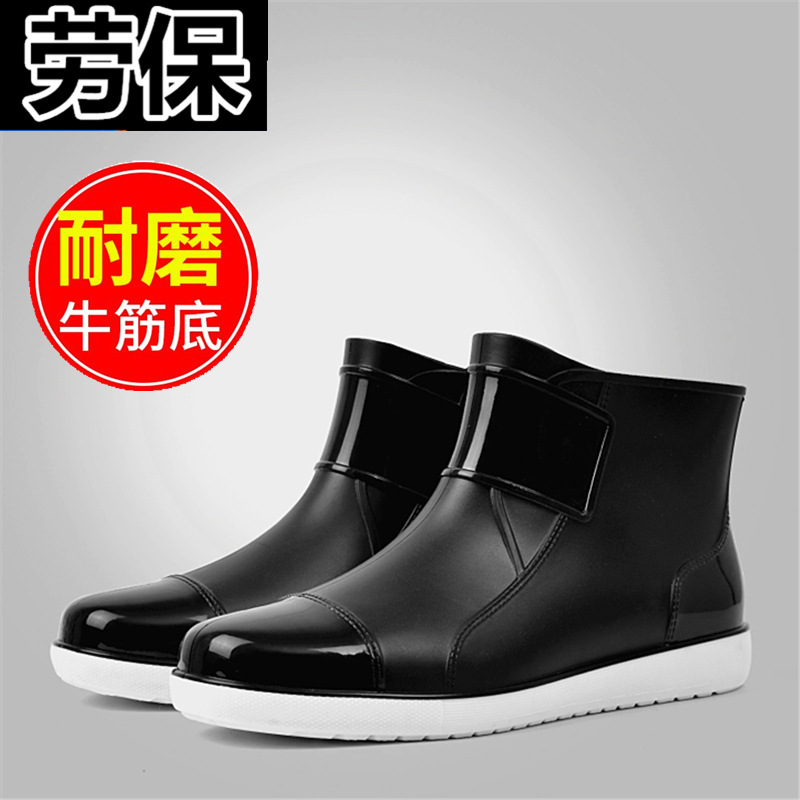 한국 스타일 캐주얼 패션 레인 슈즈 남성용 여름 짧은 로우 탑 주방 신발 미끄럼 방지 방수 신발 장화 남성 고무 신발 트렌디