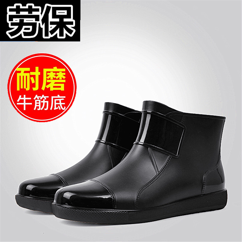 한국 스타일 캐주얼 패션 레인 슈즈 남성용 여름 짧은 로우 탑 주방 신발 미끄럼 방지 방수 신발 장화 남성 고무 신발 트렌디스토어 가기