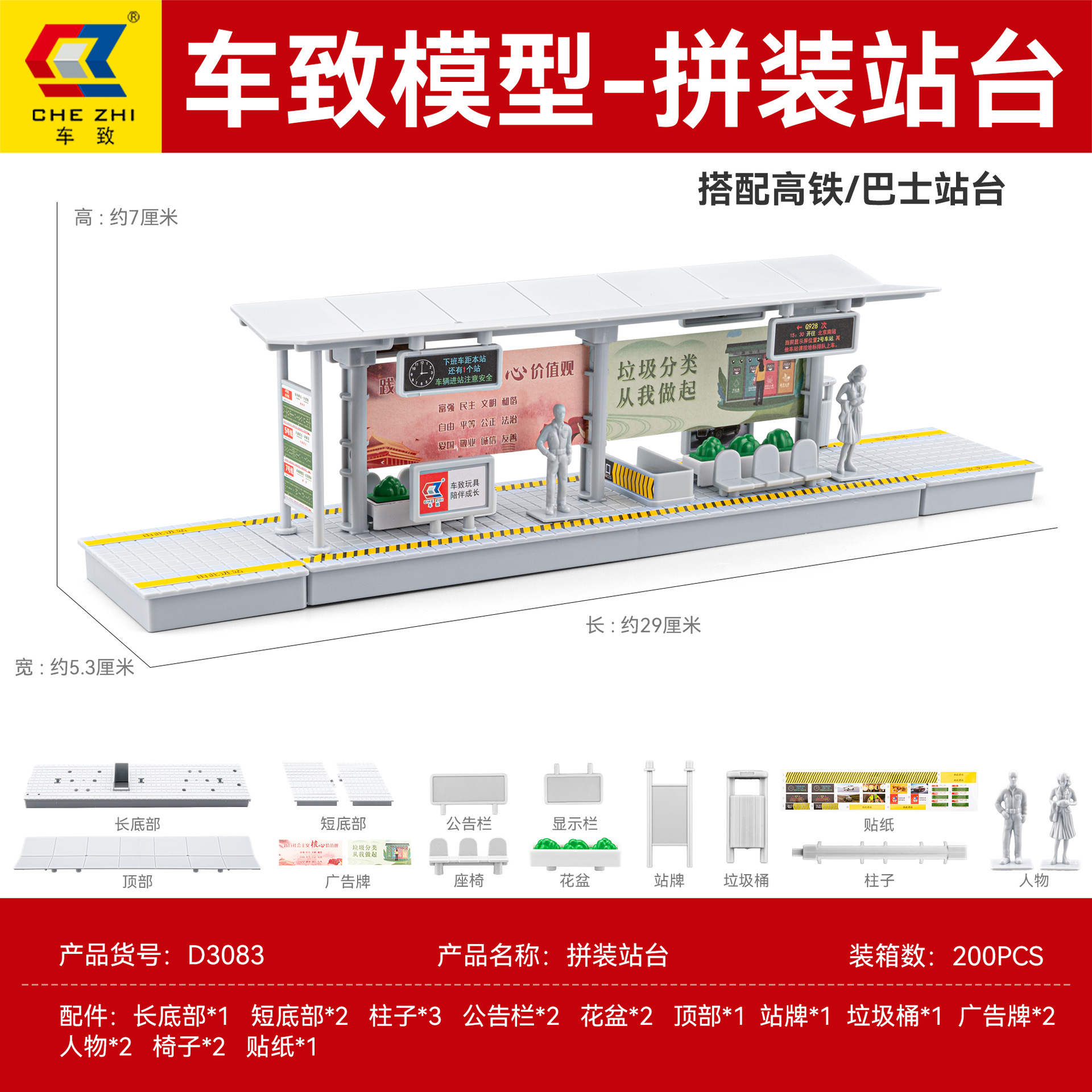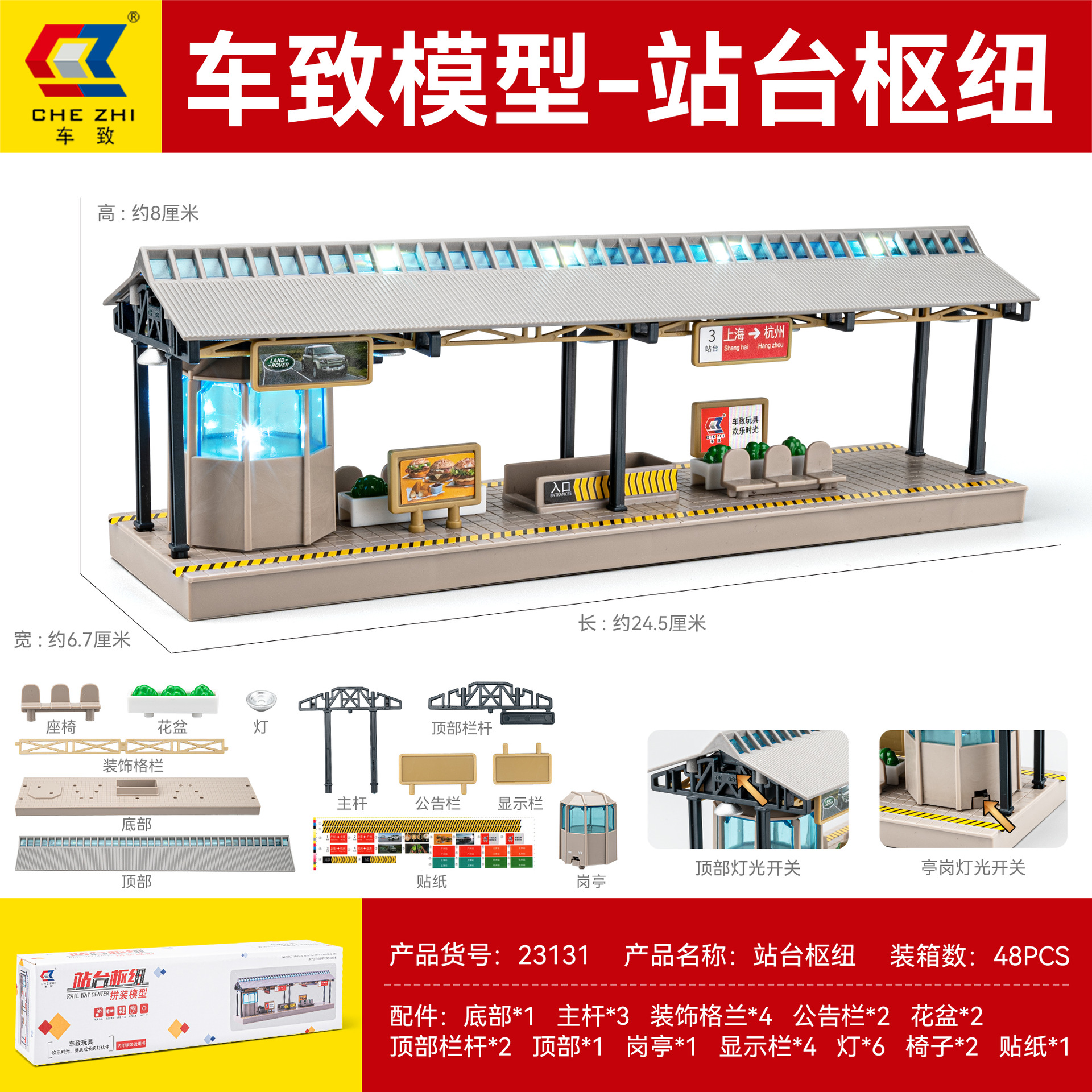 철도 교통 역 라이트 Everbright 플랫폼/레일 + 전신주/대기 파빌리온/레일 롤 기차 장난감 액세서리