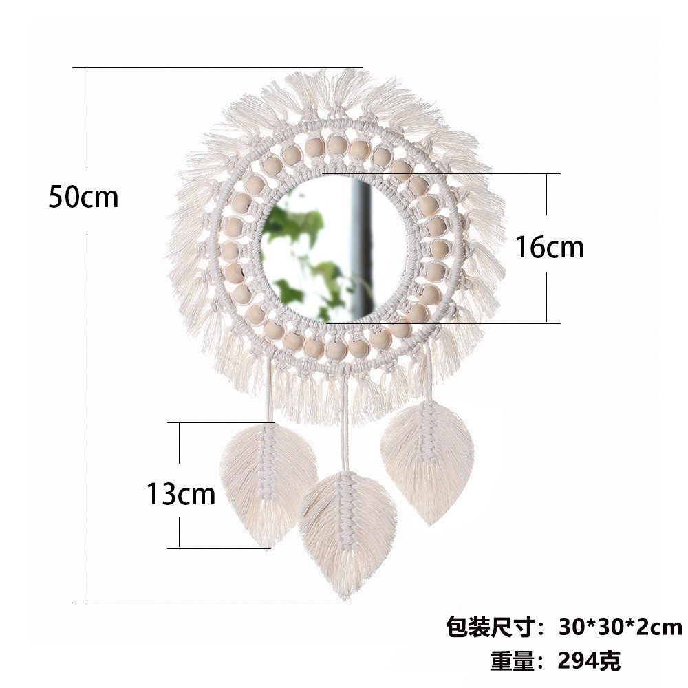 보헤미안 꼰 잎 깃털 손 꼰 태피스트리 거울 거실 침실 벽걸이 베란다 장식 거울