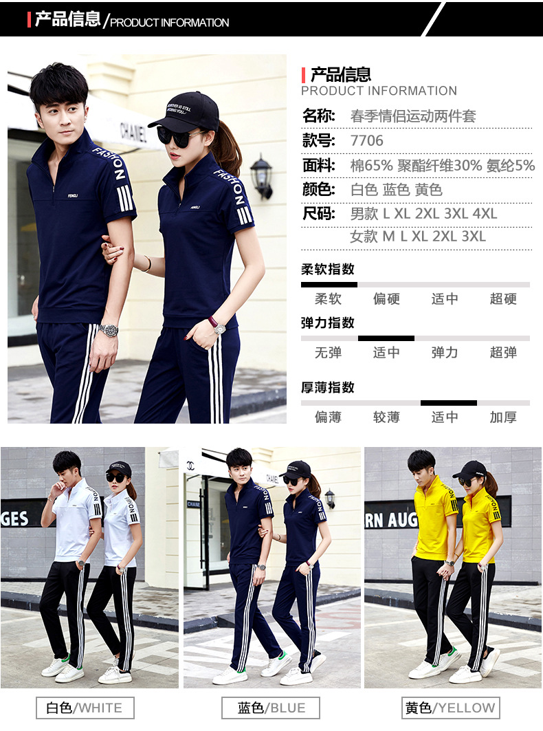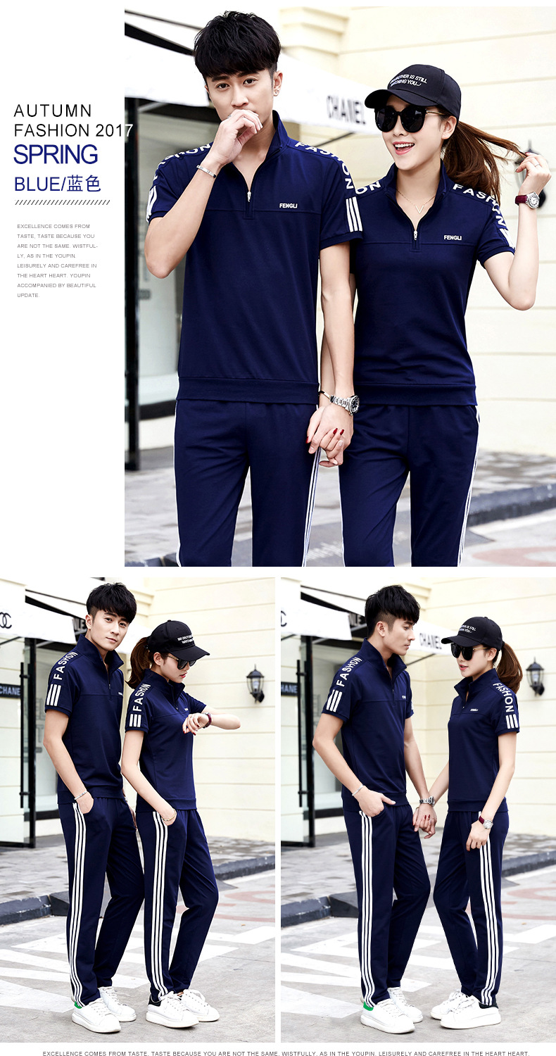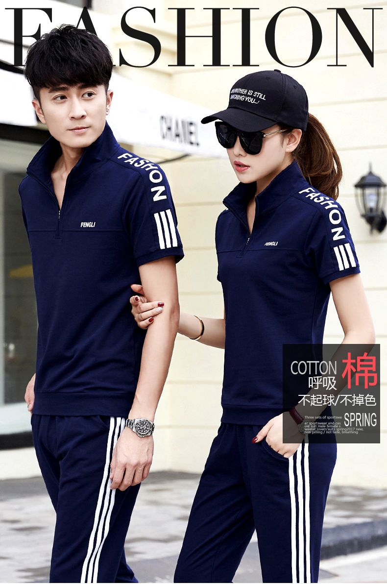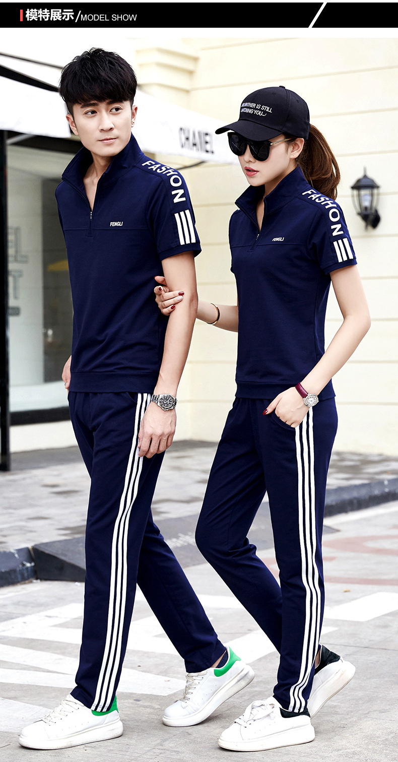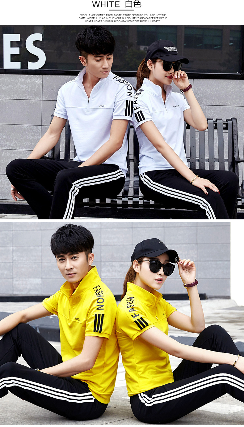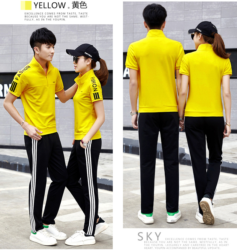 여름 커플 스포츠 세트 남자의 수직 칼라 반팔 바지 운동복 여자의 달리기 여행 스포츠웨어 그룹 구매스토어 가기