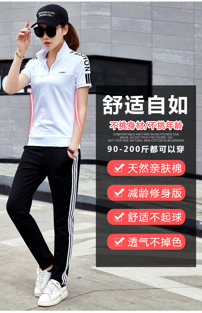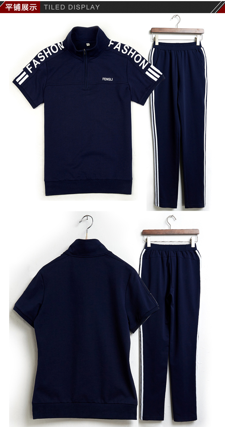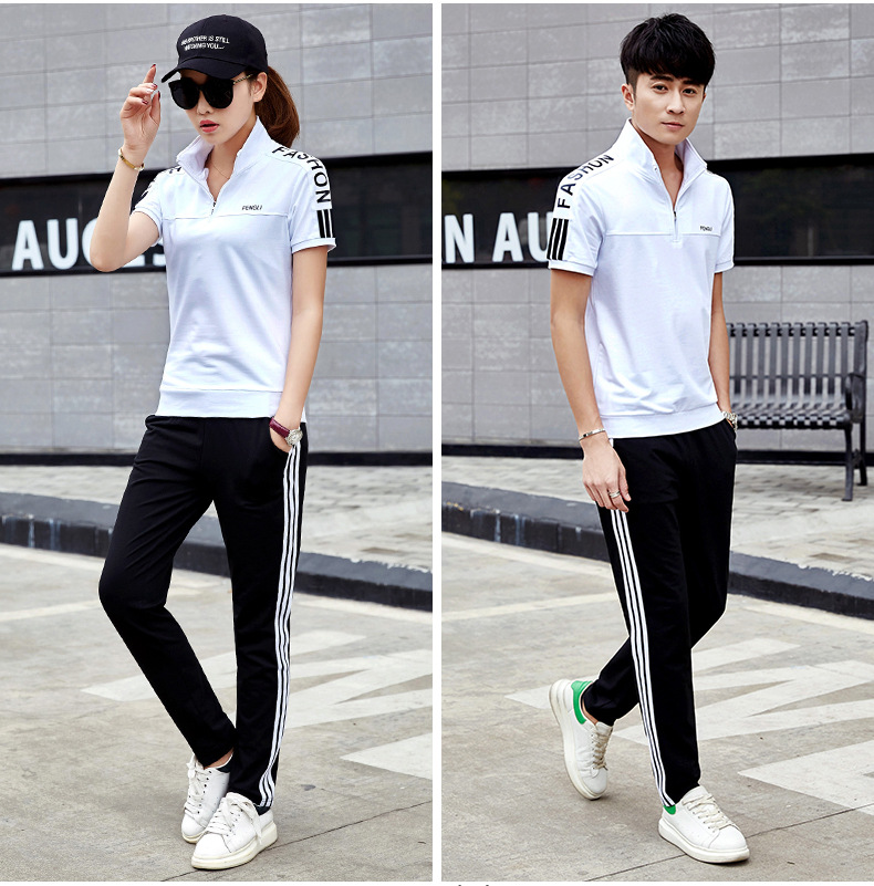 여름 커플 스포츠 세트 남자의 수직 칼라 반팔 바지 운동복 여자의 달리기 여행 스포츠웨어 그룹 구매