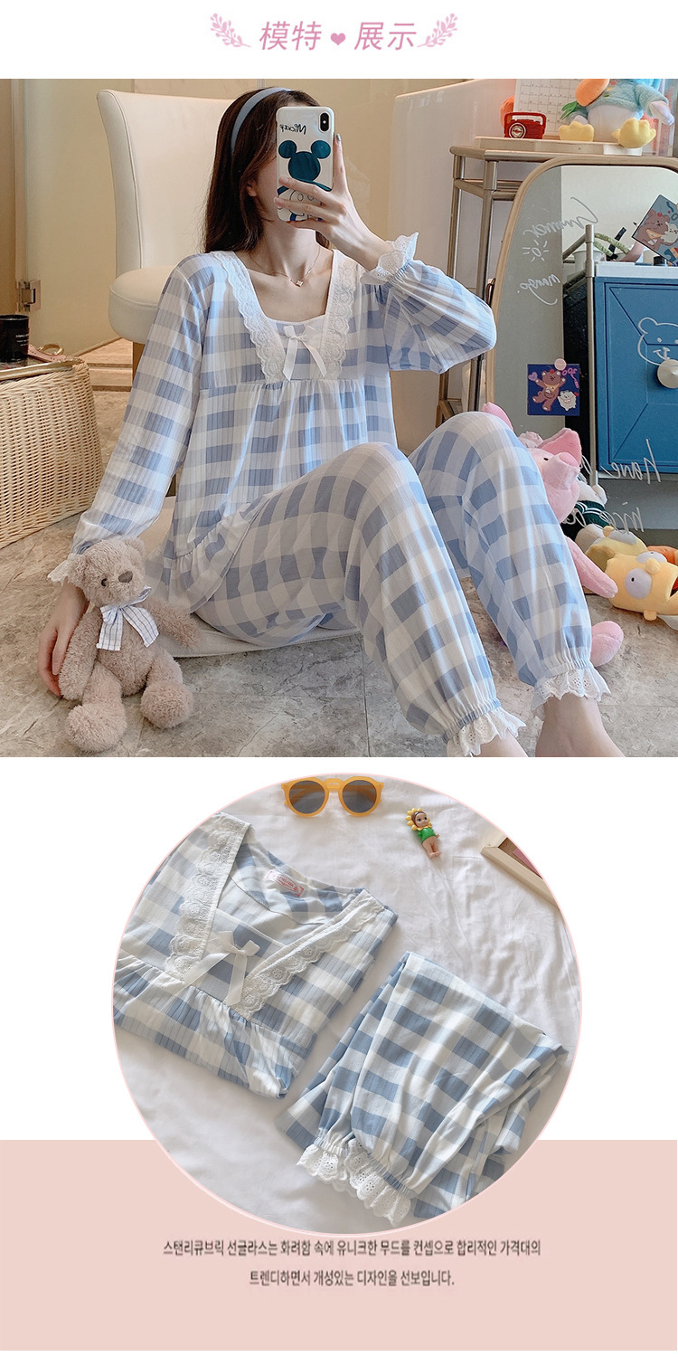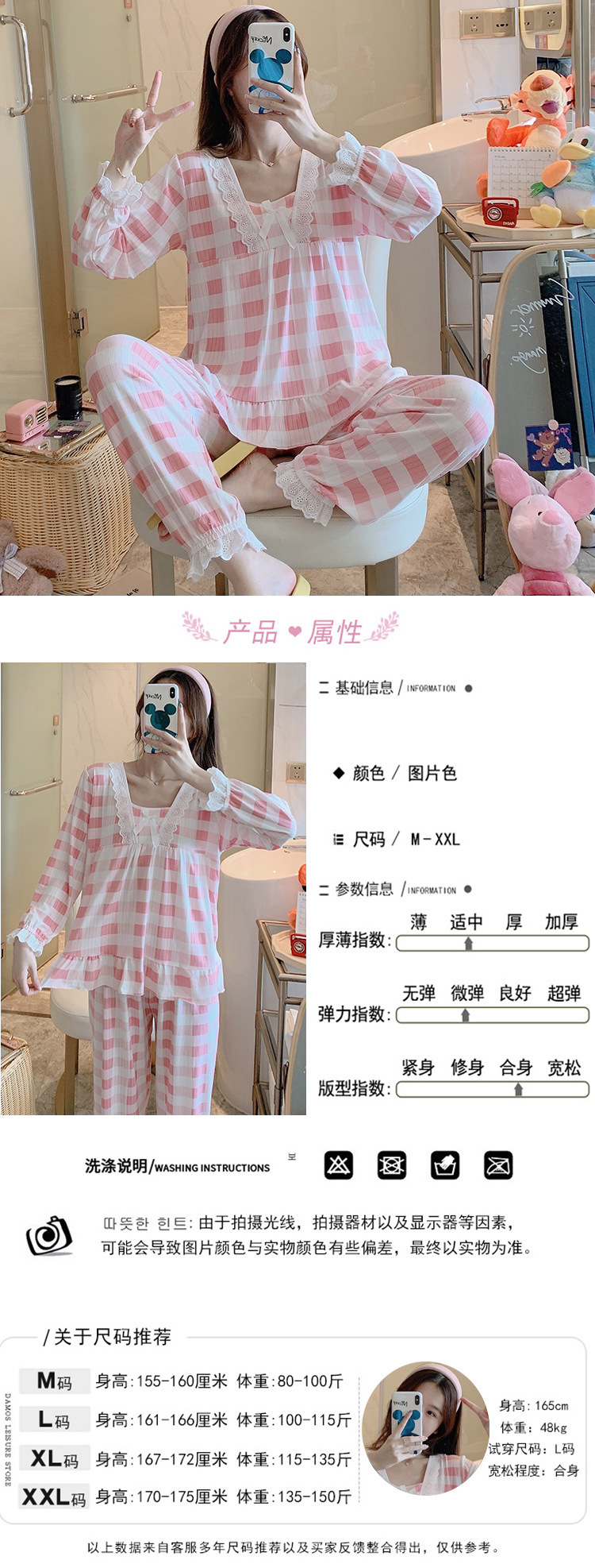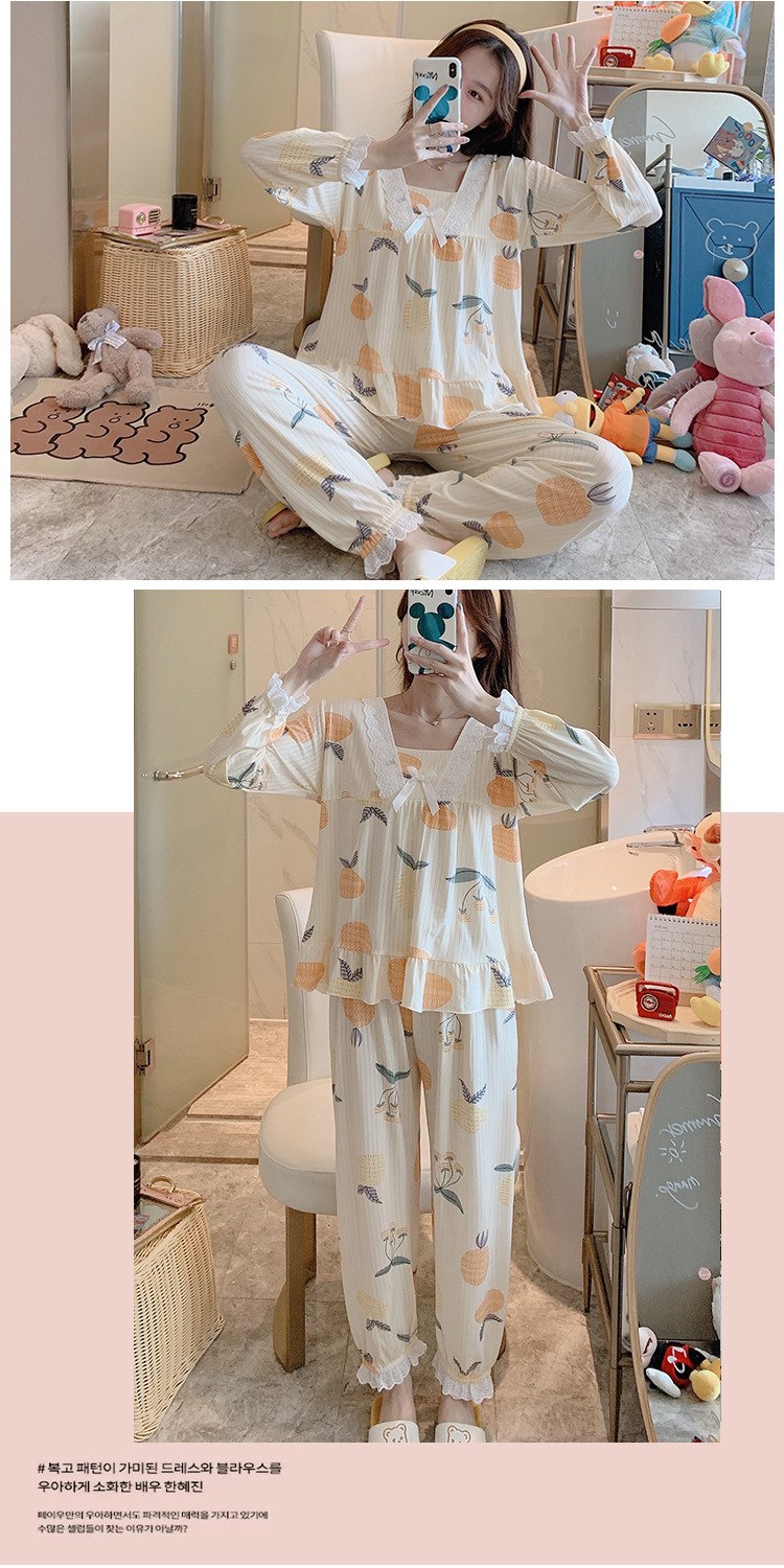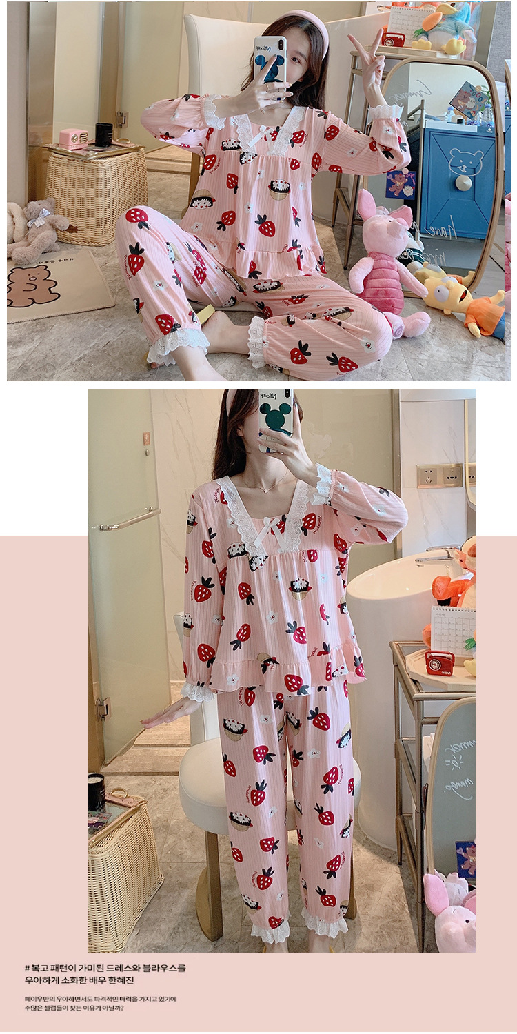 봄, 겨울, 가을 잠옷 여성용 긴 소매 구덩이 스트립 공주 스타일 레이스 귀여운 달콤한 마이크로 비즈니스 라이브 가정 의류 사용 가능스토어 가기