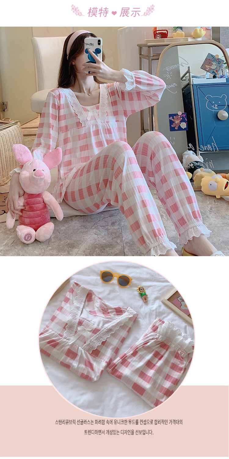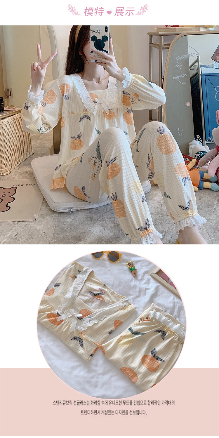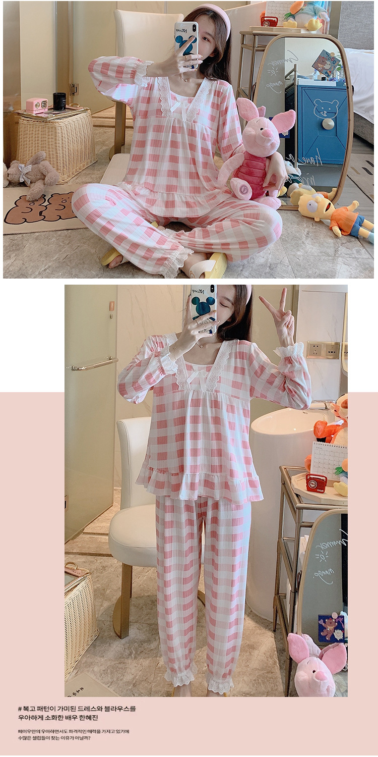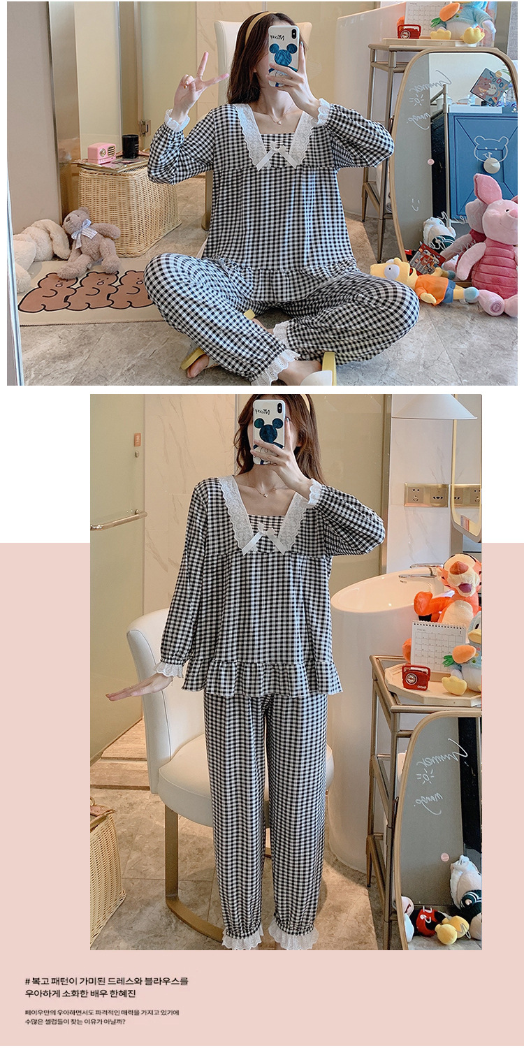 봄, 겨울, 가을 잠옷 여성용 긴 소매 구덩이 스트립 공주 스타일 레이스 귀여운 달콤한 마이크로 비즈니스 라이브 가정 의류 사용 가능스토어 가기