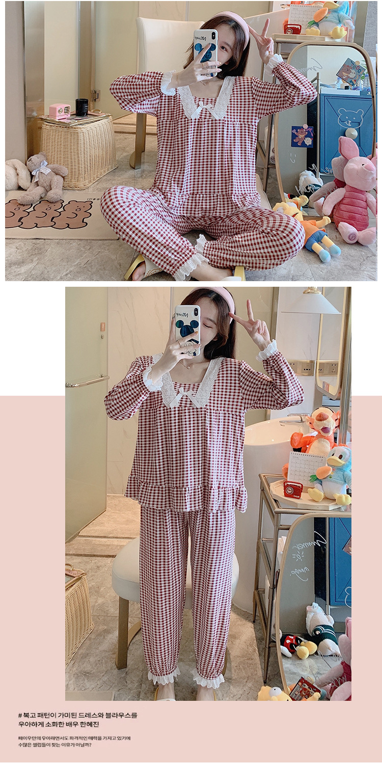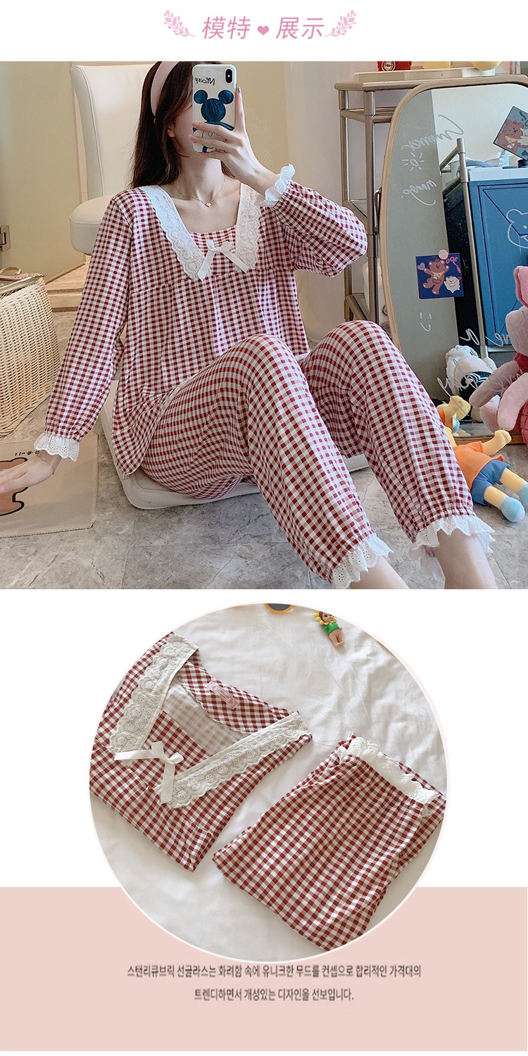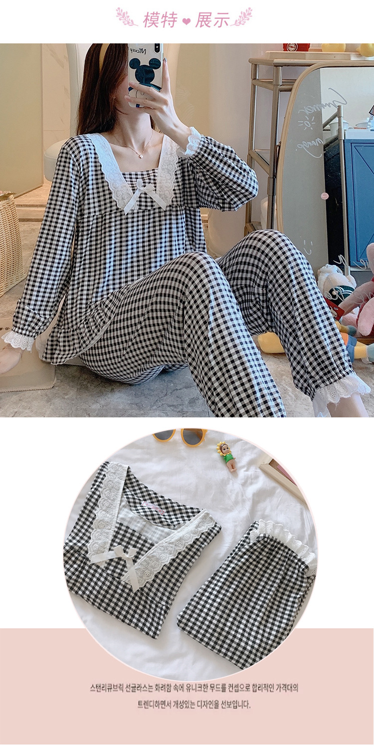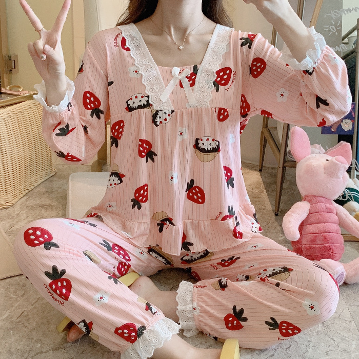 봄, 겨울, 가을 잠옷 여성용 긴 소매 구덩이 스트립 공주 스타일 레이스 귀여운 달콤한 마이크로 비즈니스 라이브 가정 의류 사용 가능스토어 가기
