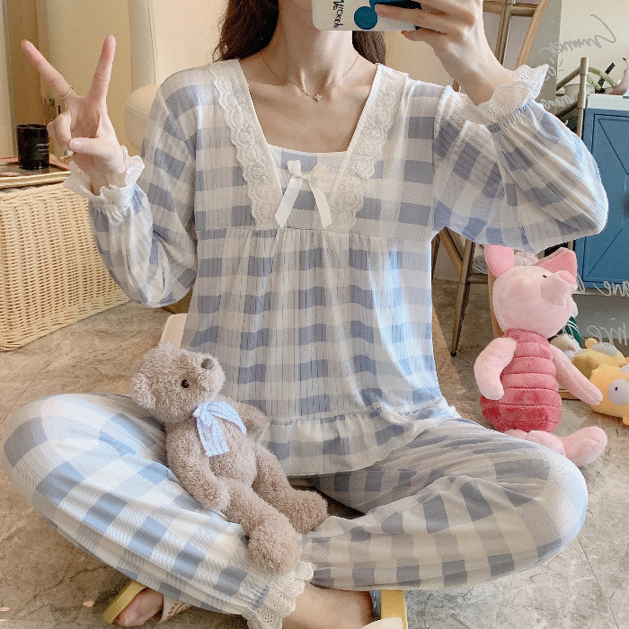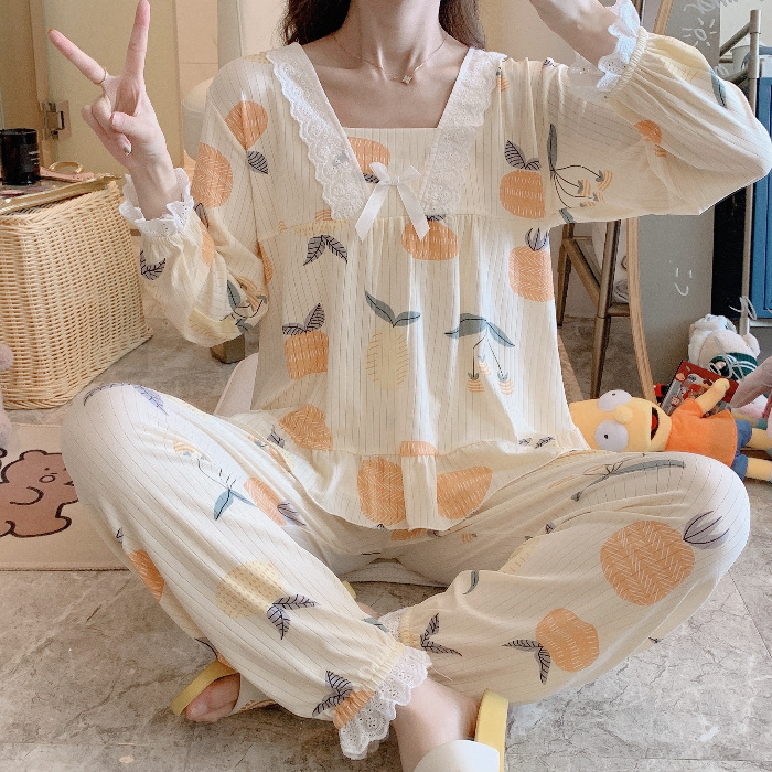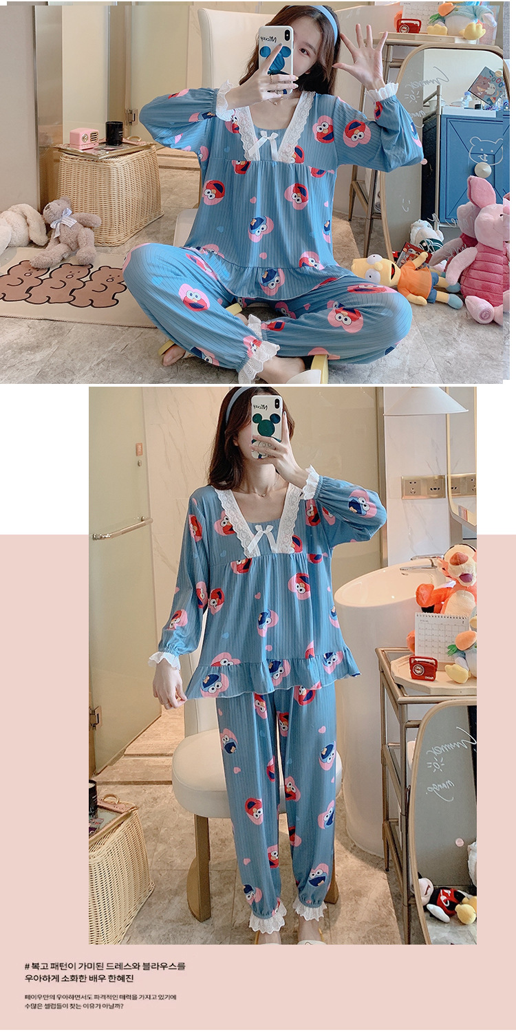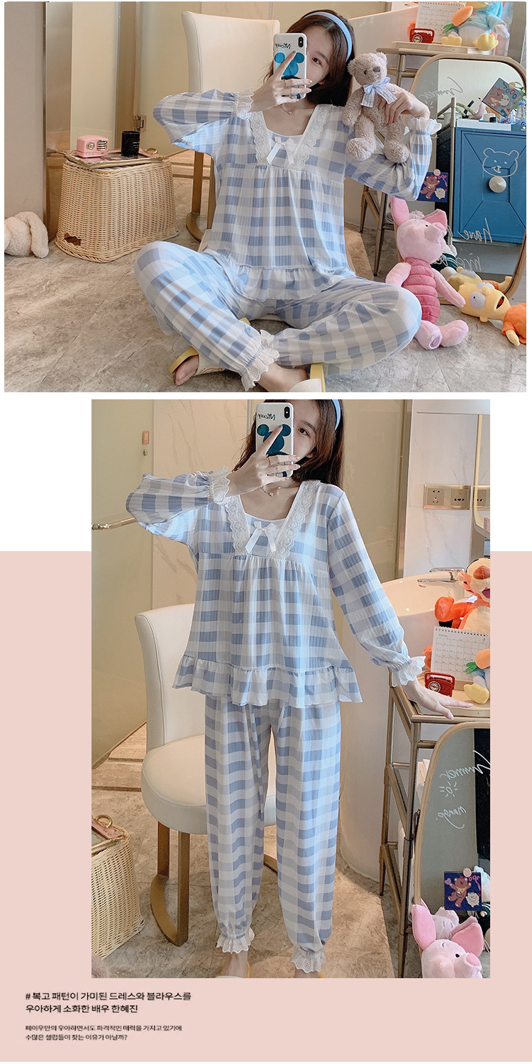 봄, 겨울, 가을 잠옷 여성용 긴 소매 구덩이 스트립 공주 스타일 레이스 귀여운 달콤한 마이크로 비즈니스 라이브 가정 의류 사용 가능