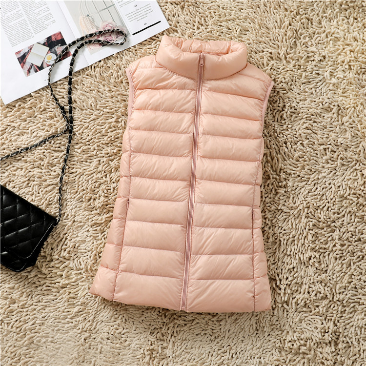 2025 라이트 다운 조끼 여성의 봄과 가을 칼라 짧은 흰색 오리 다운 조끼 플러스 사이즈 내부 조끼 조끼 자켓