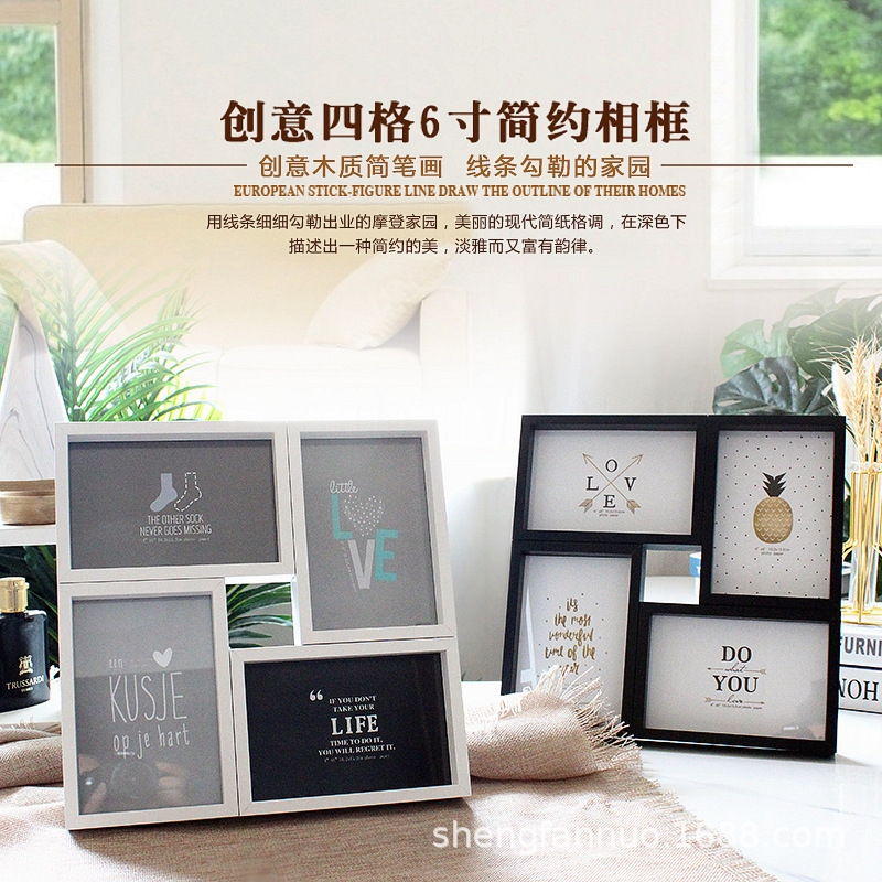 크리 에이 티브 조합 4 프레임 6 인치 사진 프레임 테이블 벽 교수형 이중 사용 결합 사진 벽 북유럽 흑백 사진 프레임 도매스토어 가기