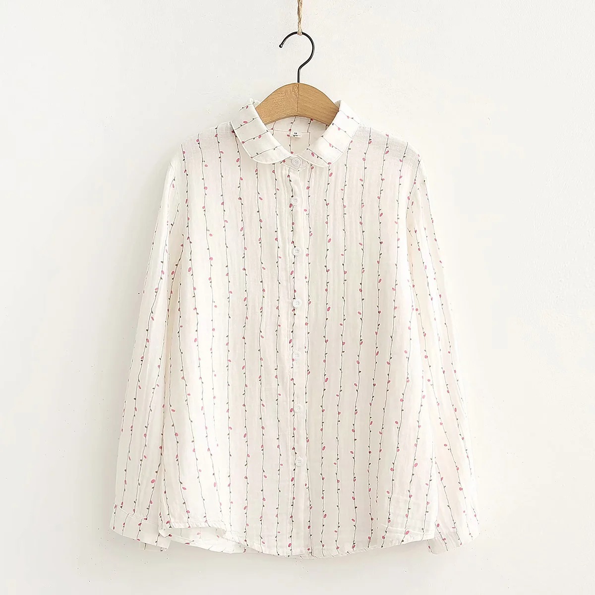 일본식 새로운 더블 레이어 면사 긴팔 셔츠 여성용 한국 스타일 느슨한 예술적 작은 꽃 면 소프트 셔츠 15167스토어 가기