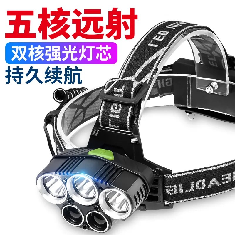 국경 간 옥외 강한 빛 밝은 LED 촬영 5 헤드 라이트 충전식 조명 야간 낚시 광부 램프 헤드 마운트 낚시 램프