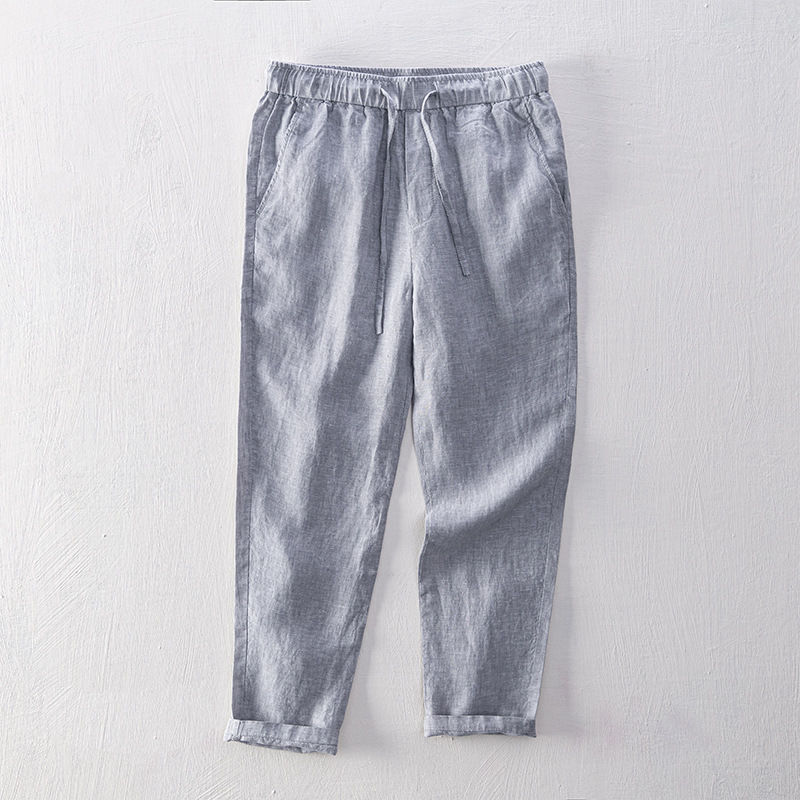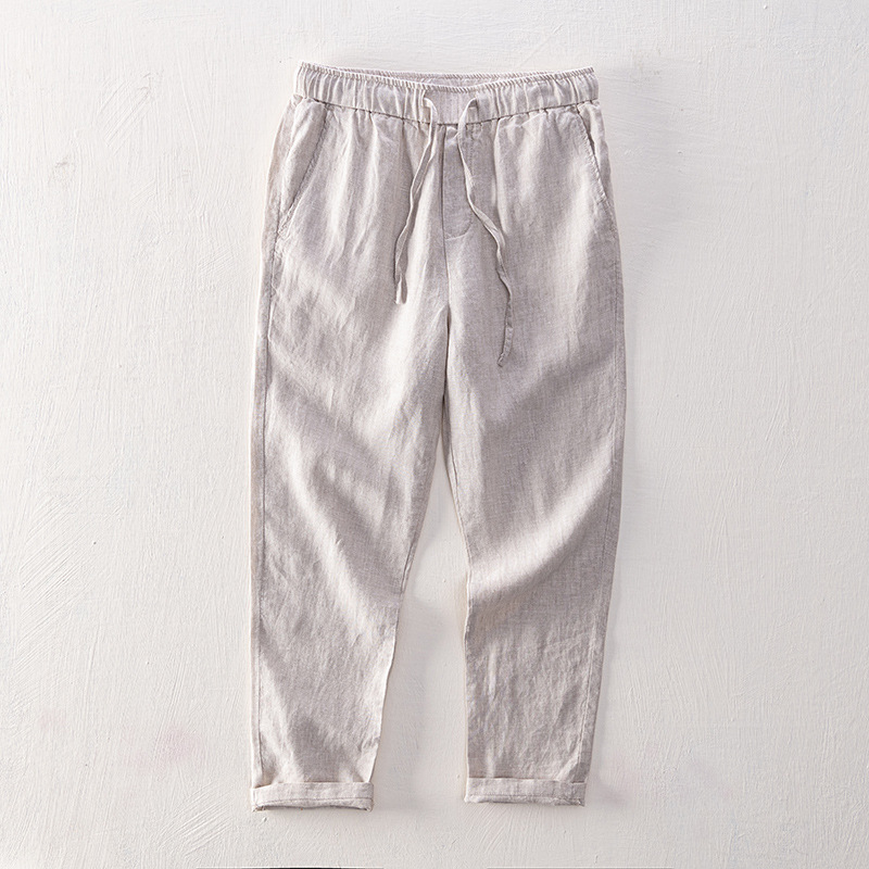 L8210 새로운 심플 캐주얼 바지 남성용 청소년 여름 린넨 통기성 스트레이트 팬츠 남성용 헤어 세대스토어 가기
