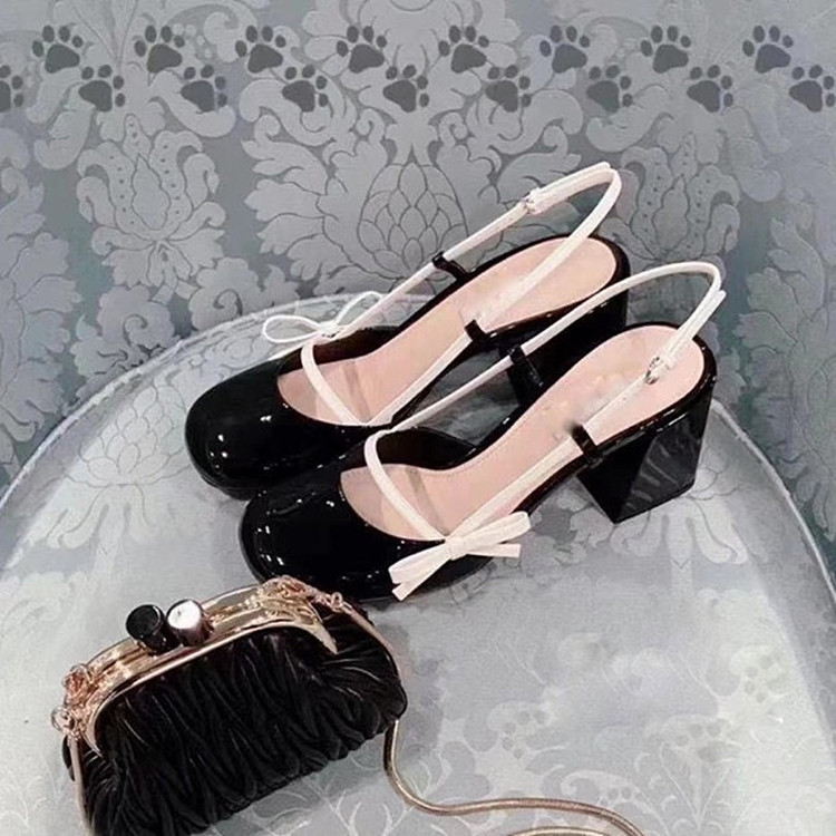 메리제인 슈즈 2025 봄 여름 신상 레트로 하이힐 두꺼운 굽 배색 라운드 토 리본 뒤트임 샌들 여성용스토어 가기