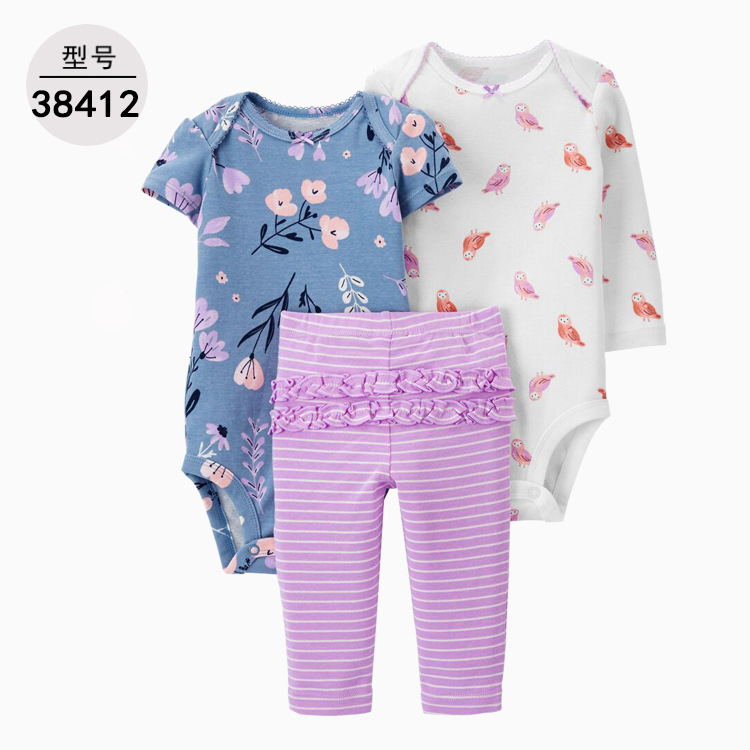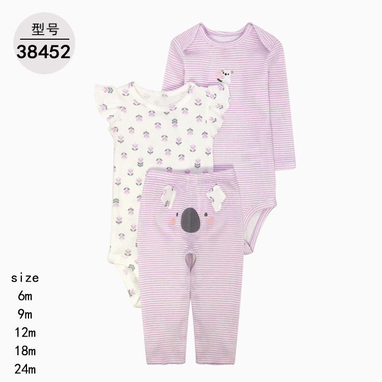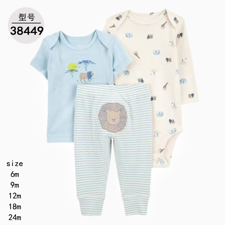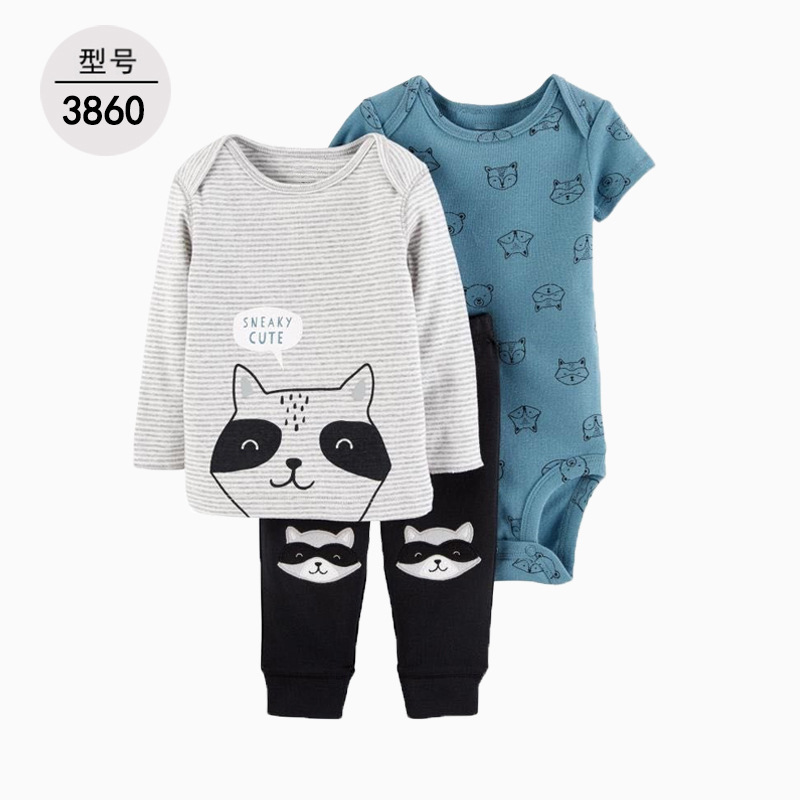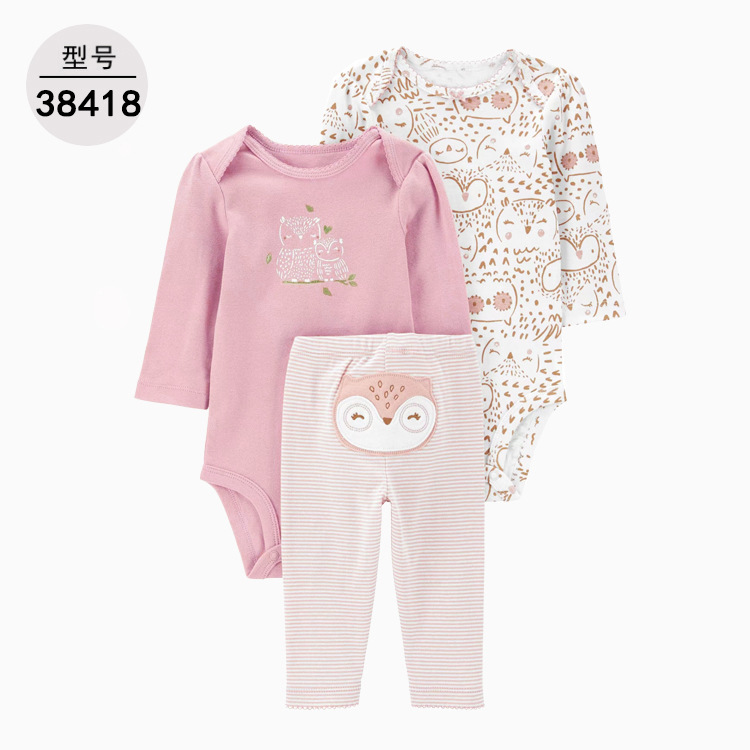 공장 도매 아기 옷 아기 옷 세 조각 세트 긴 소매 가방 방귀 옷 바지 [국경 간 공급]