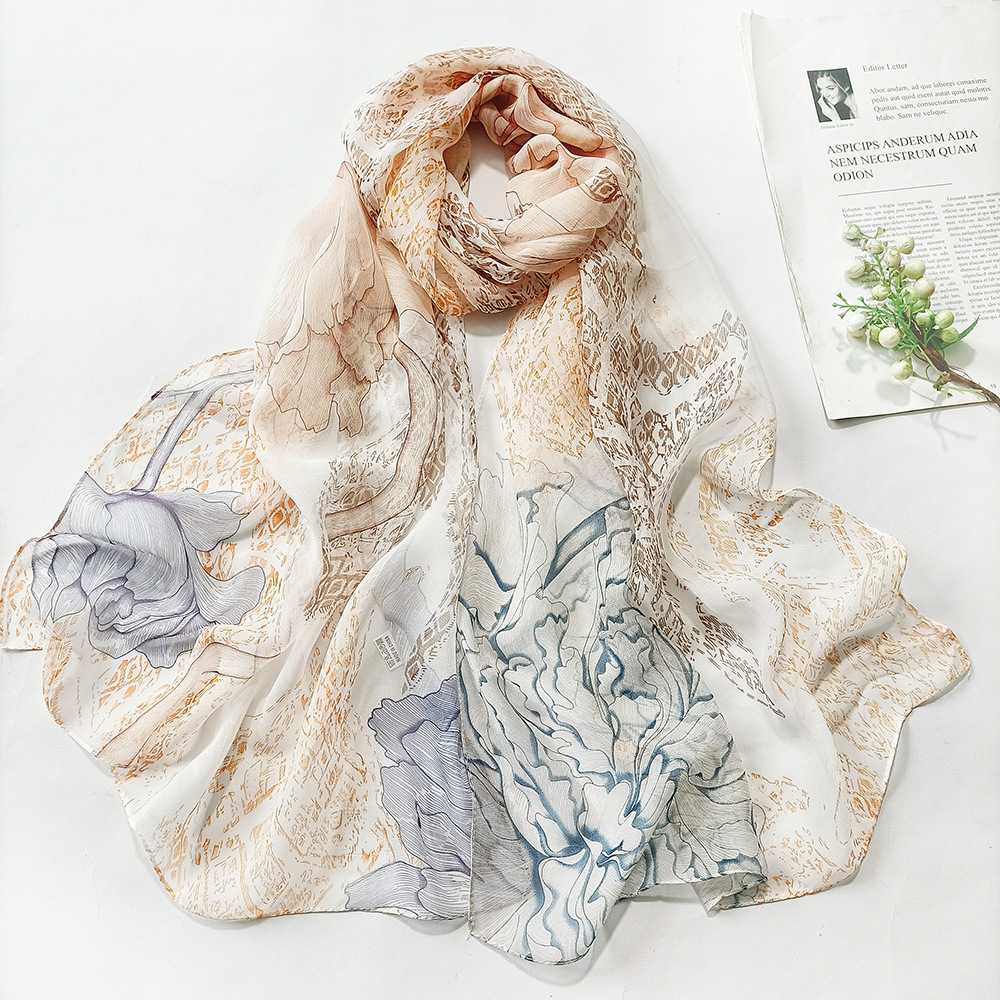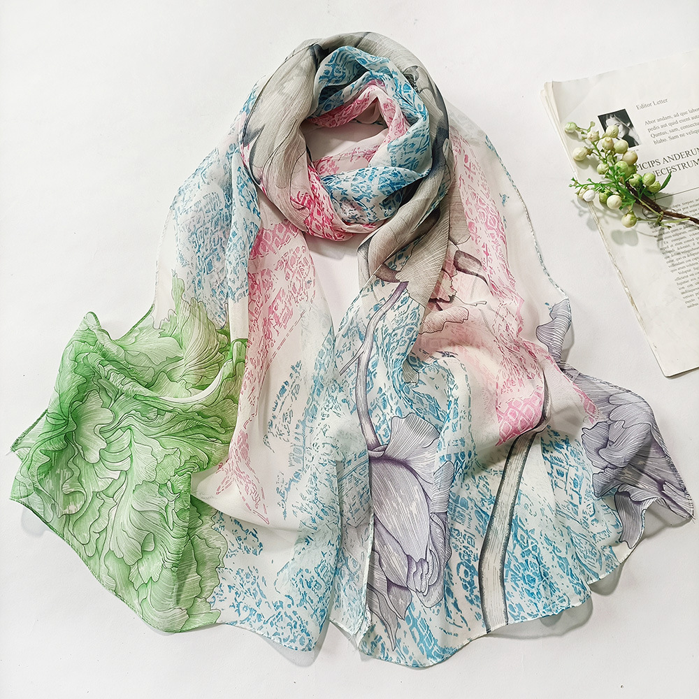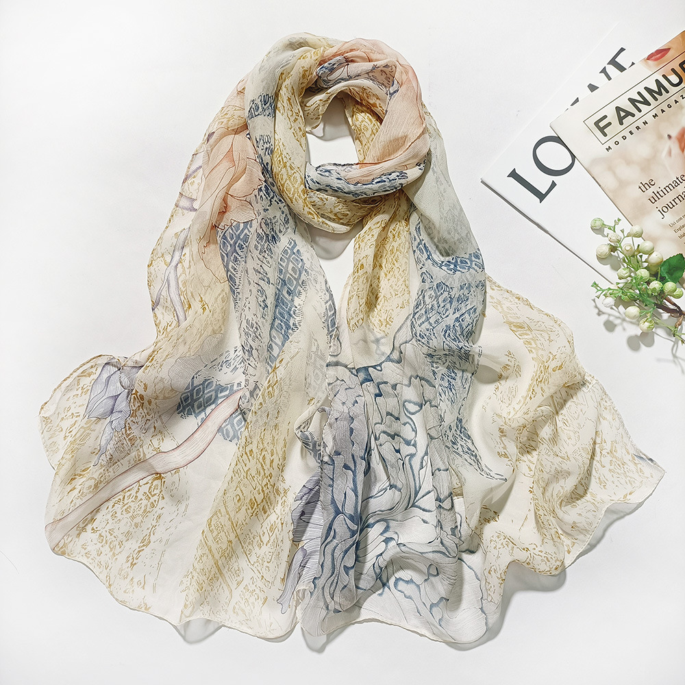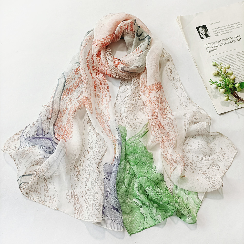 여자의 얇은 스카프 작은 긴 스카프 모조 실크 목가적 인 Qiaoqi 봄 여름 스카프 여름 자외선 차단제 스카프 도매스토어 가기
