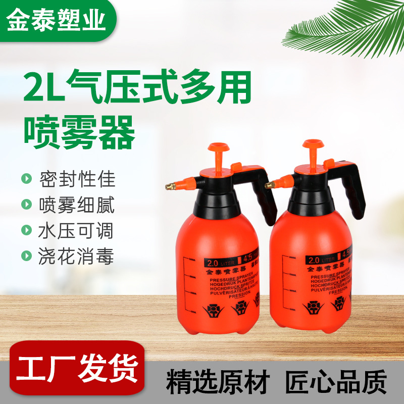 주황색 2L 스프레이병 가정용 소독 스프레이병 분무기 압력식 화분 물주기 플라스틱 스프레이병