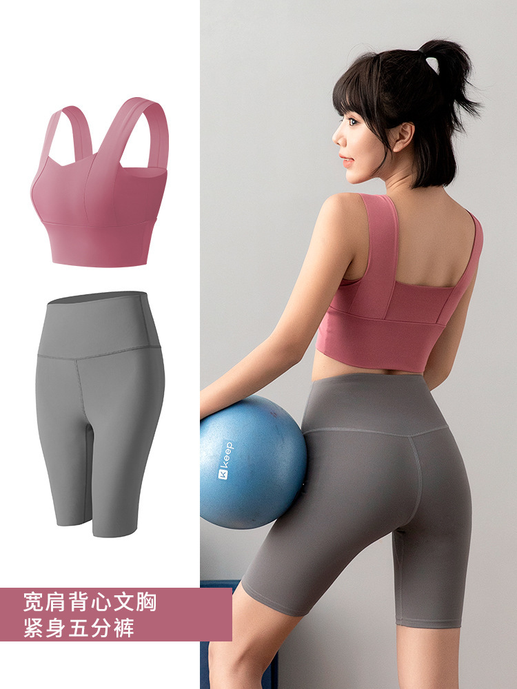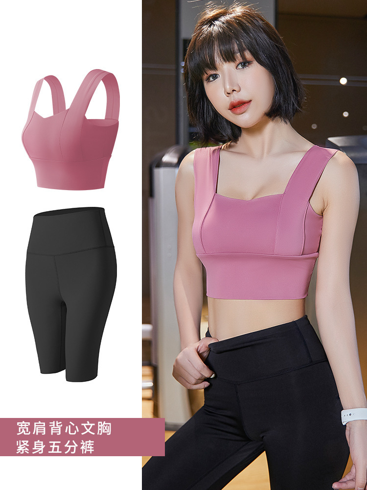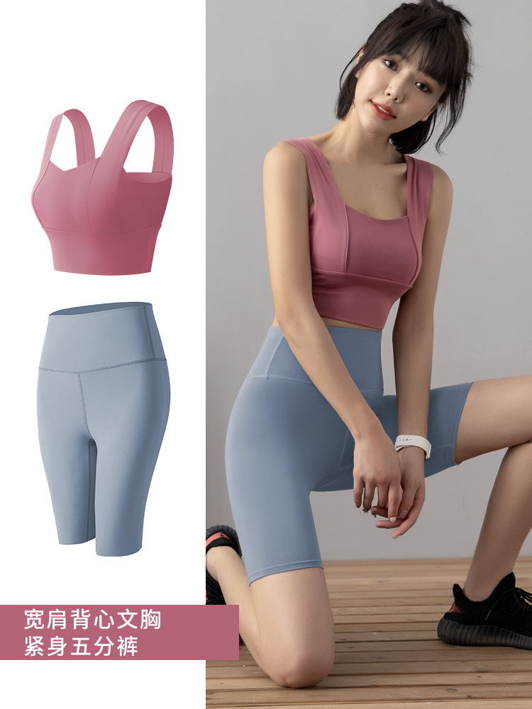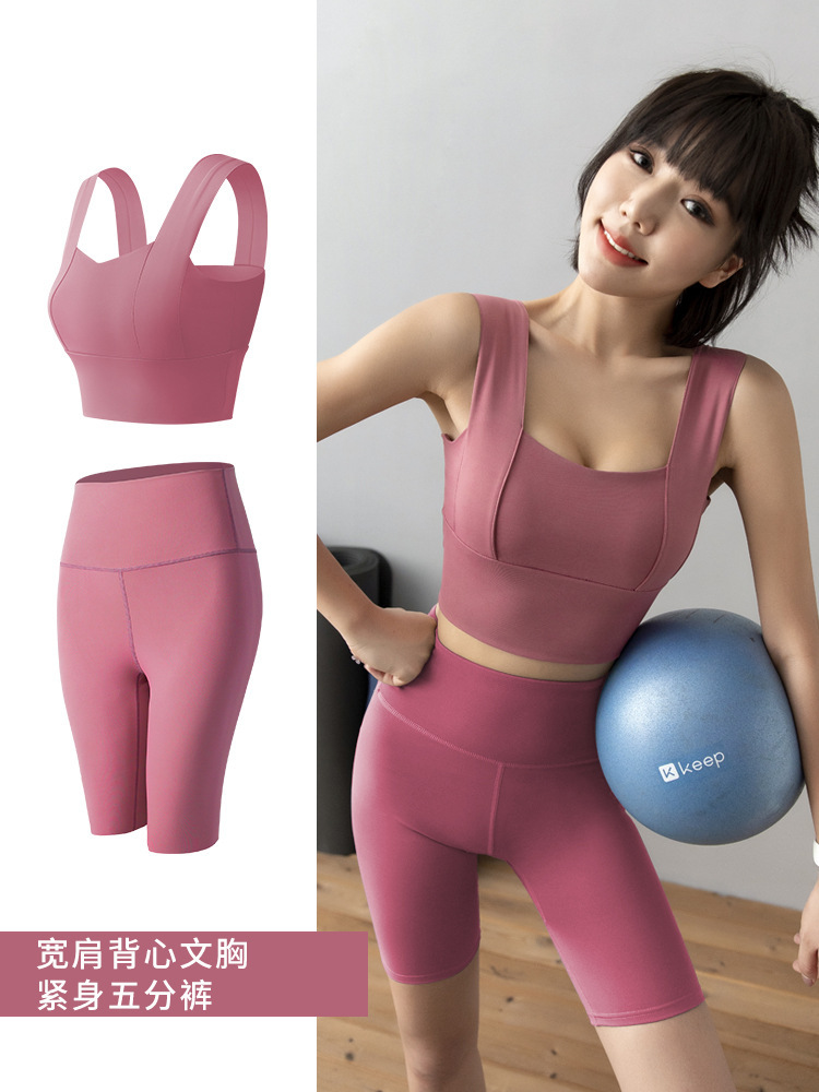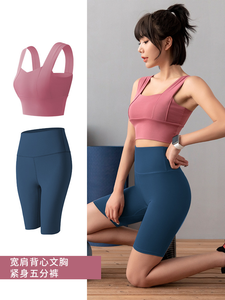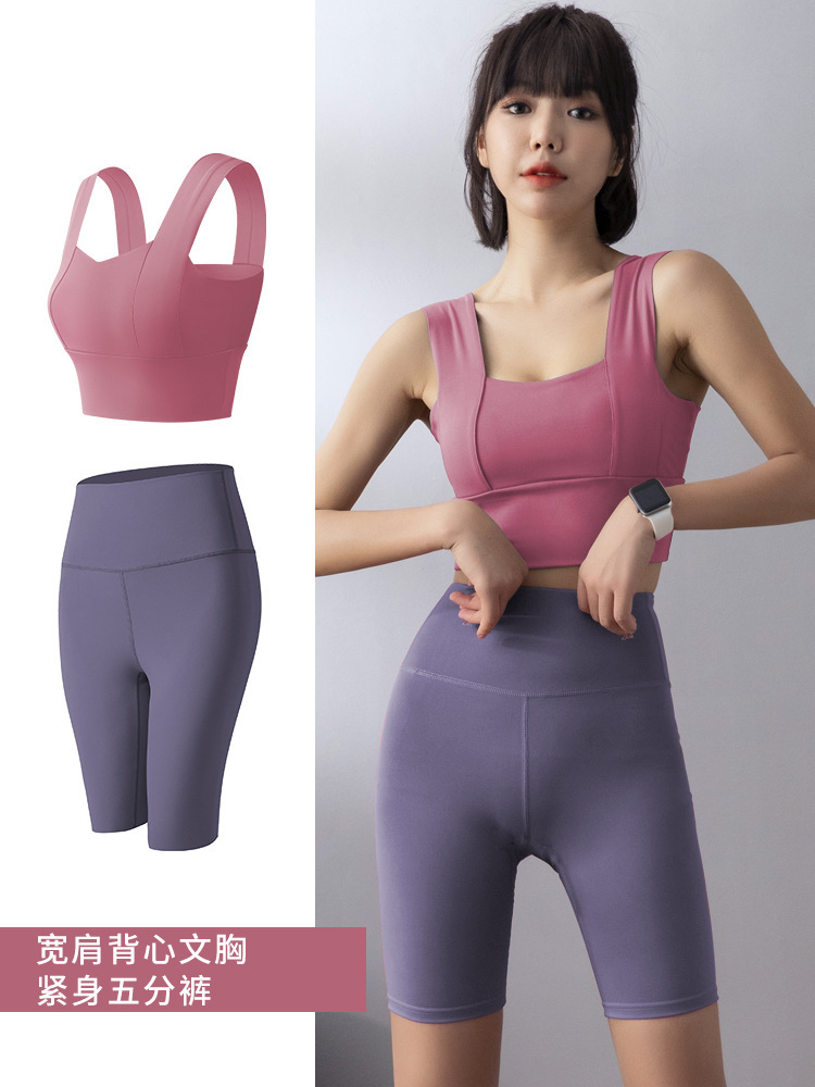 Juyitang 요가 의류 스포츠 세트 여성의 여름 피트니스 타이트 복숭아 높은 허리 엉덩이 바지 조끼 탑 2 피스 세트