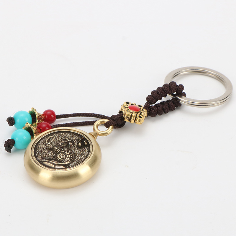 열쇠 고리를 돌리기 위해 돈 열쇠 고리를 돌리는 손잡이 조각 돈 손 조각을 돌리기 위해 돈을 돌리는 순수한 구리 손 조각