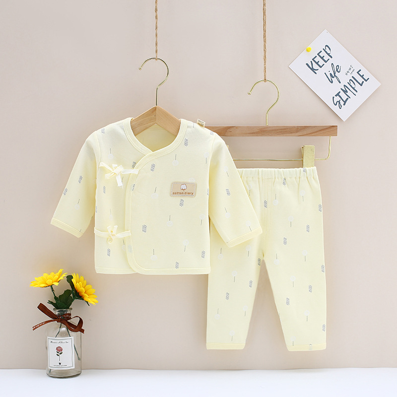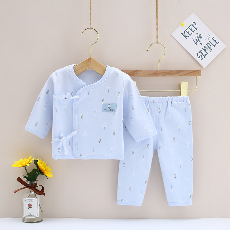 아기 옷 신생아 면 두 조각 세트 아기 봄 가을과 겨울 긴 소매 인쇄 레이스 업 따뜻한 잠옷 세트