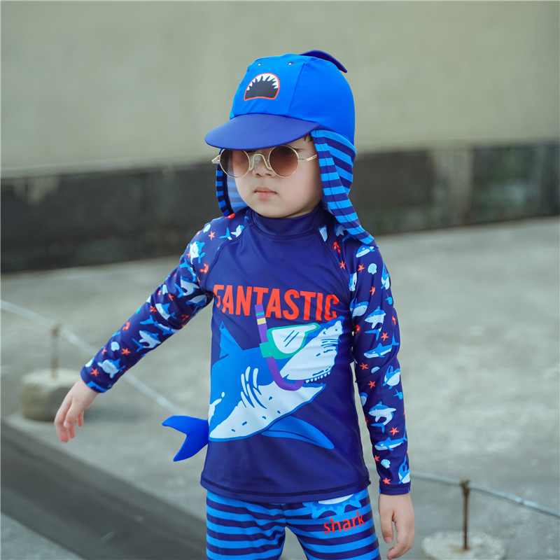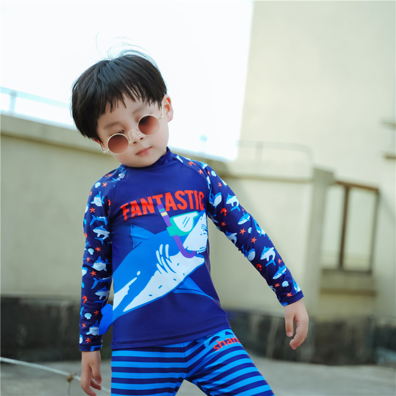 한국식 잘 생긴 소년 상어 수영복 중소 어린이 스플릿 수영복 아기 긴팔 바지 자외선 차단제 수영 서퍼 의류스토어 가기