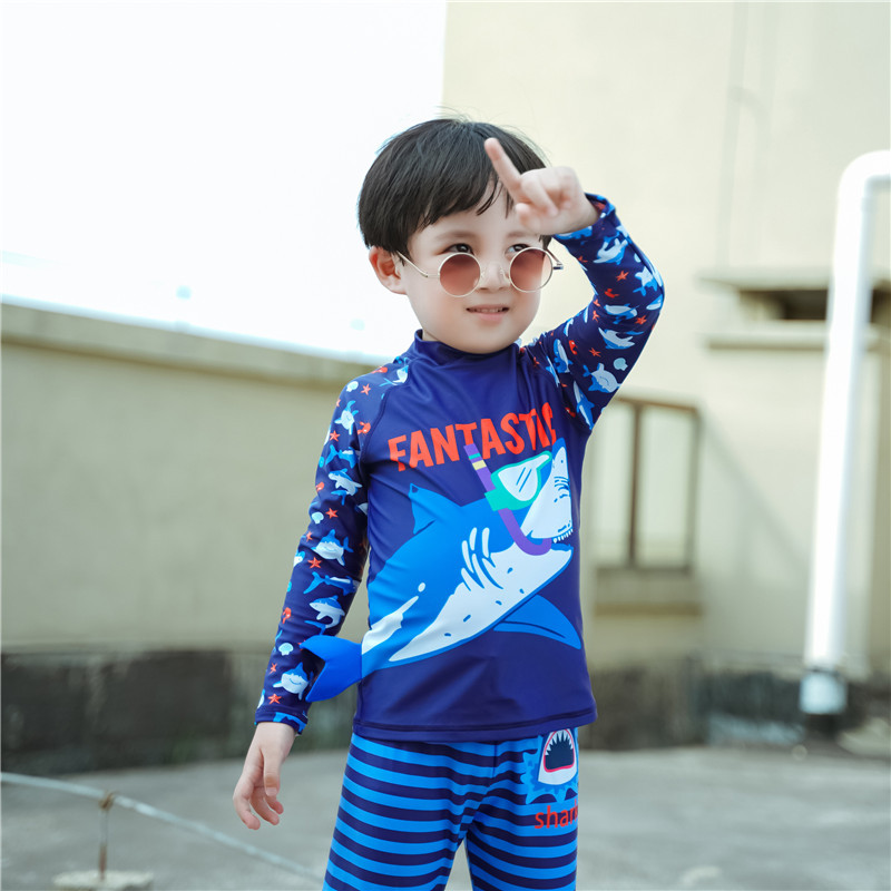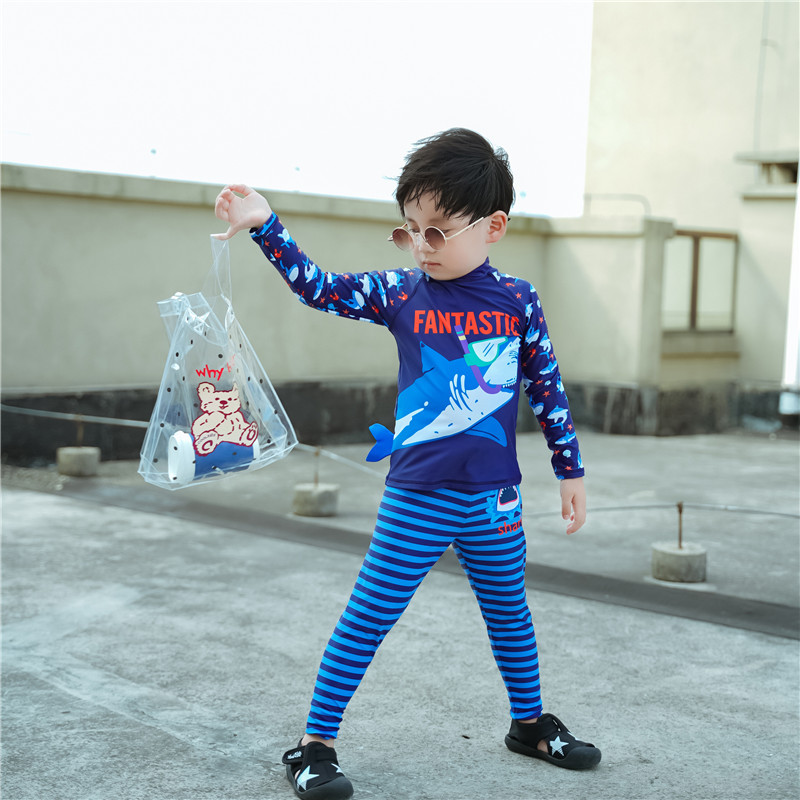 한국식 잘 생긴 소년 상어 수영복 중소 어린이 스플릿 수영복 아기 긴팔 바지 자외선 차단제 수영 서퍼 의류