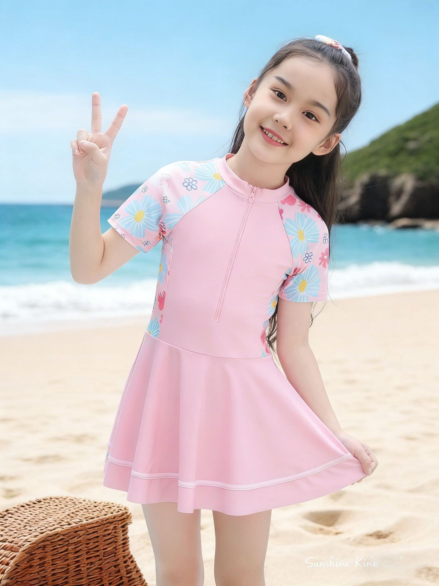 새로운 어린이 수영복 도매 소녀 원피스 스커트 소녀 귀여운 공주 수영복 학생 소녀 수영복스토어 가기