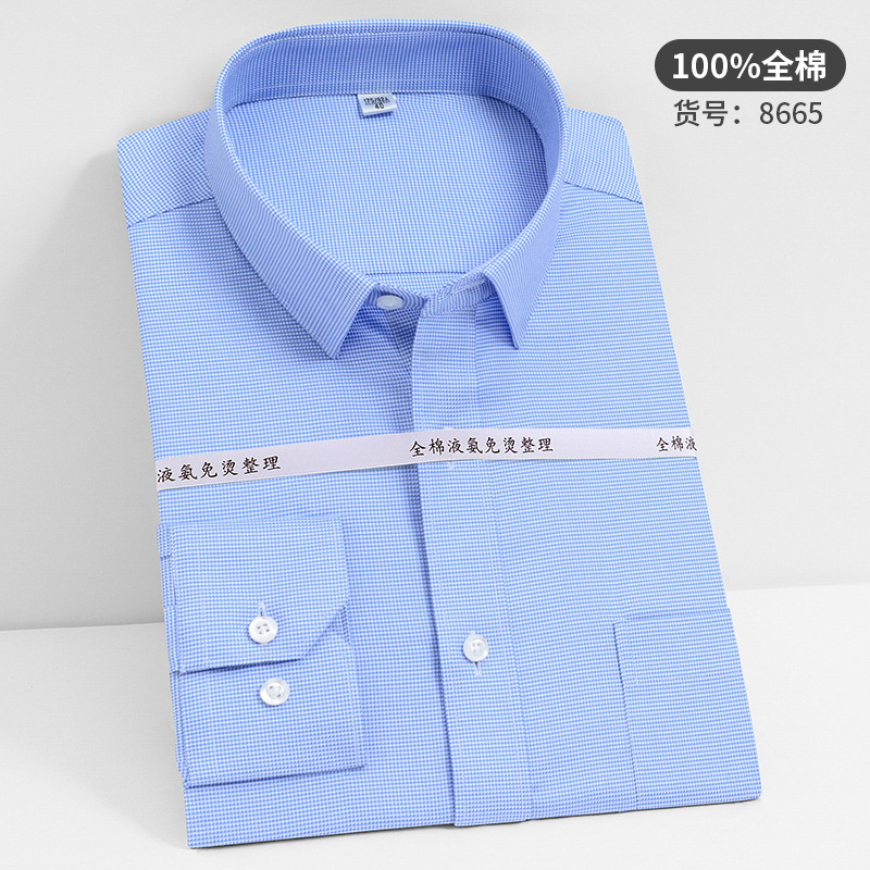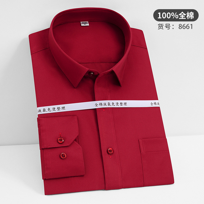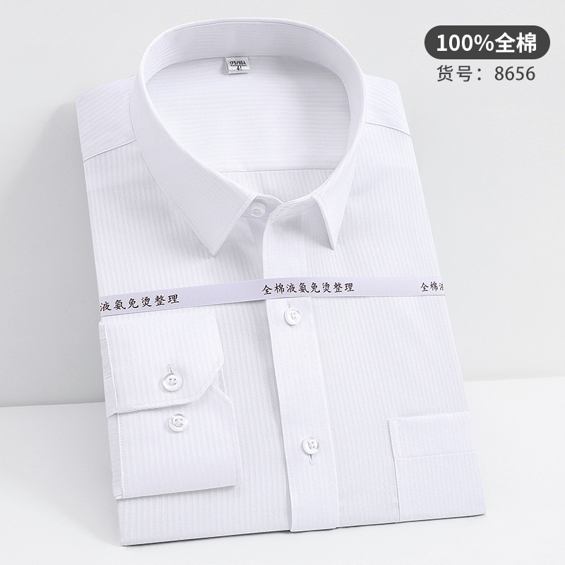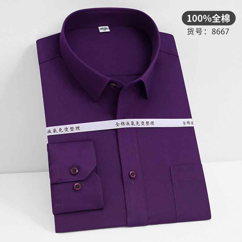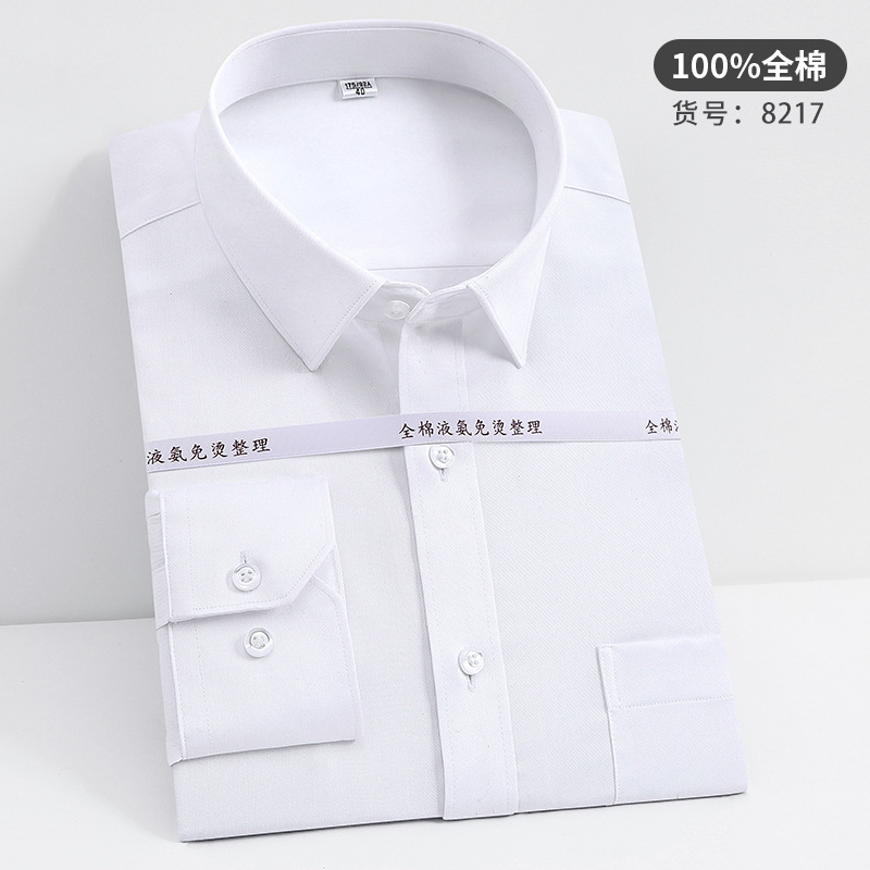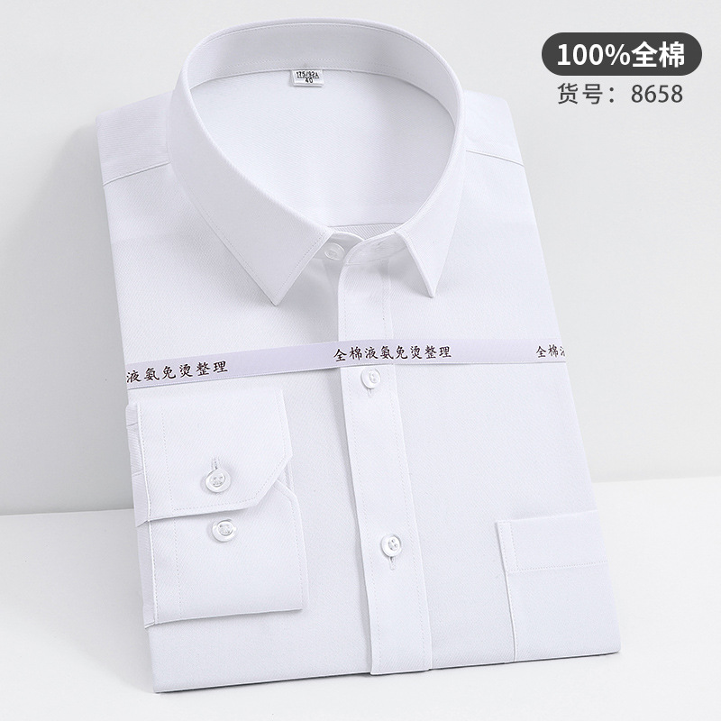 고급 순면 긴팔 셔츠 비즈니스 남성용 순면 액체 암모니아 비 다림질 단색 셔츠 프로 작업복 베이스 셔츠
