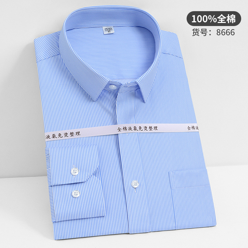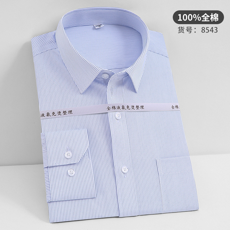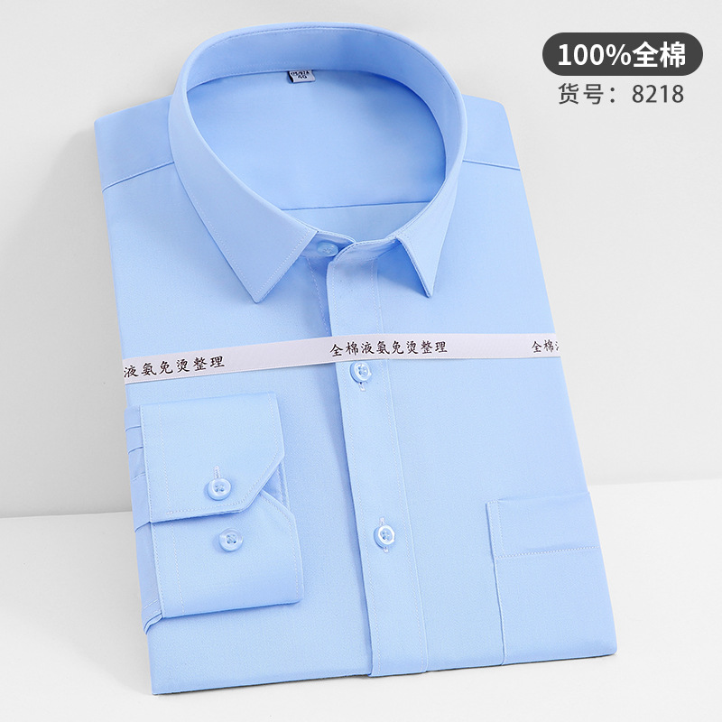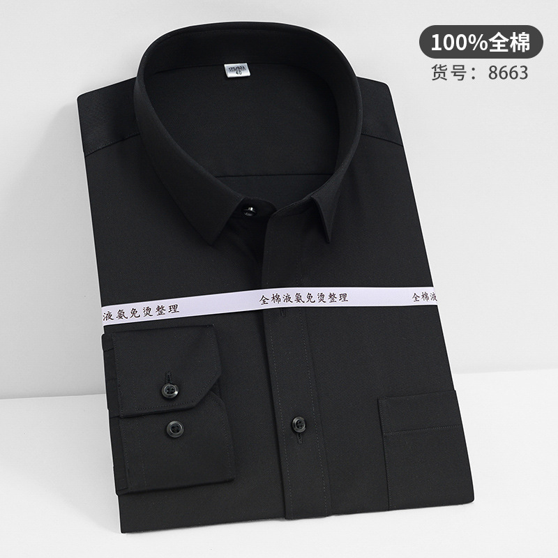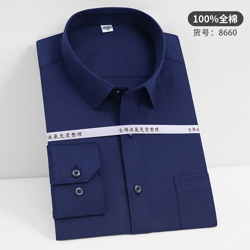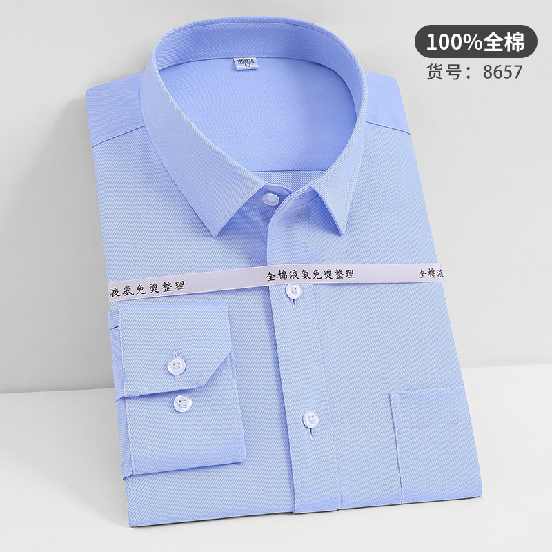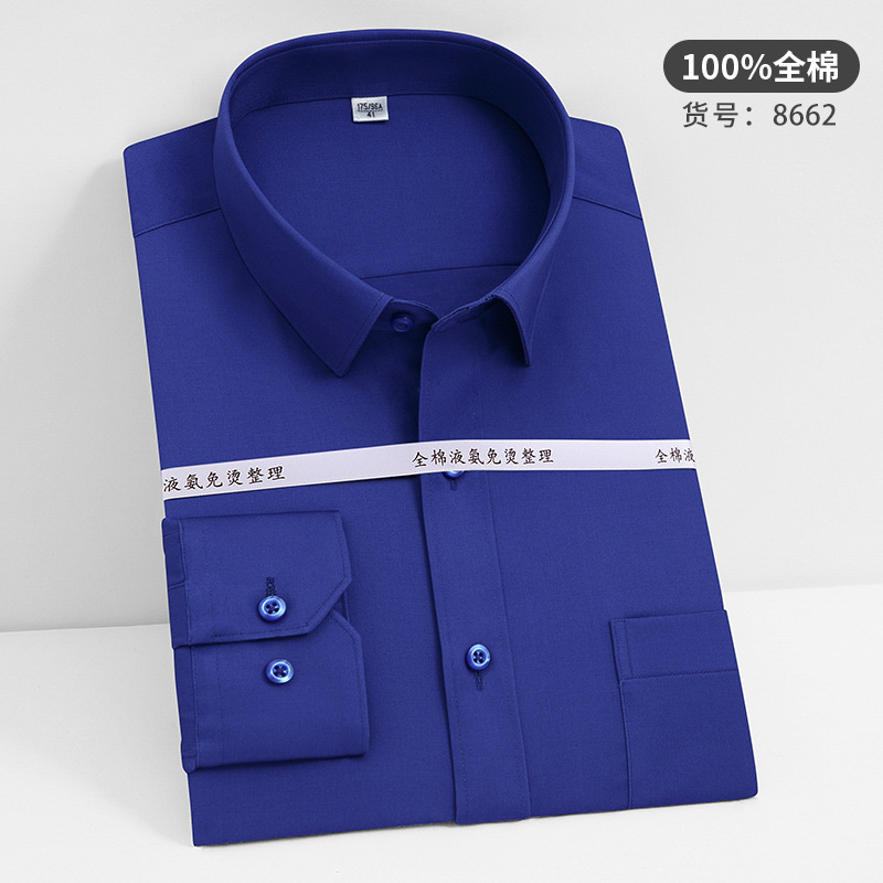 고급 순면 긴팔 셔츠 비즈니스 남성용 순면 액체 암모니아 비 다림질 단색 셔츠 프로 작업복 베이스 셔츠스토어 가기